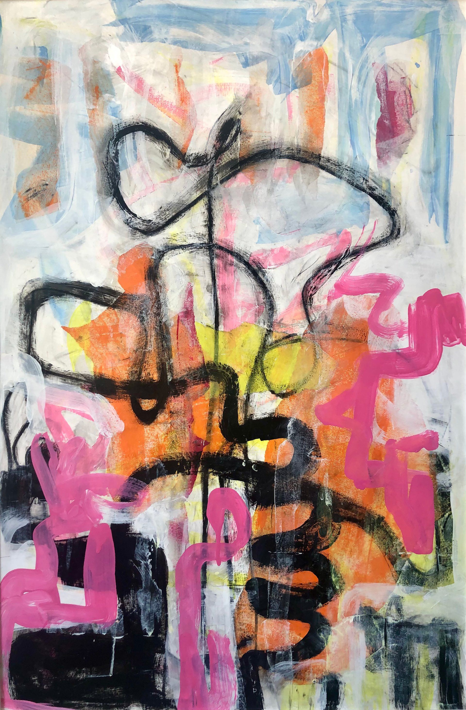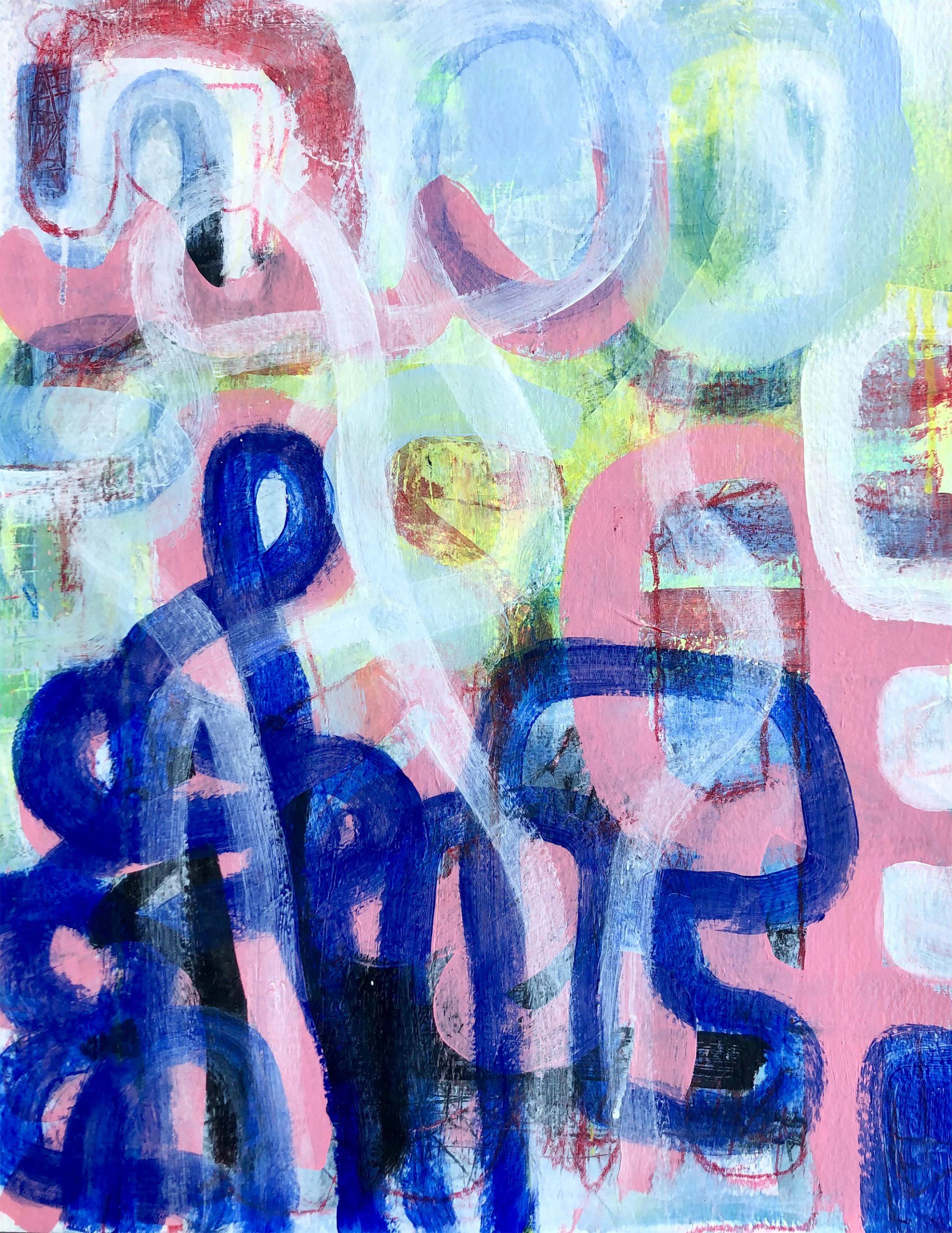 Marion Gunesch, Cozy moments - “Cozy Moments” was created in several layers of acrylics and pastels on paper. Curved and partly transparent lines overlay these layers and give the artwork a very special and cozy character. The fact that art can expresses my feelings in such a way is a mystery for me every day and should be celebrated.