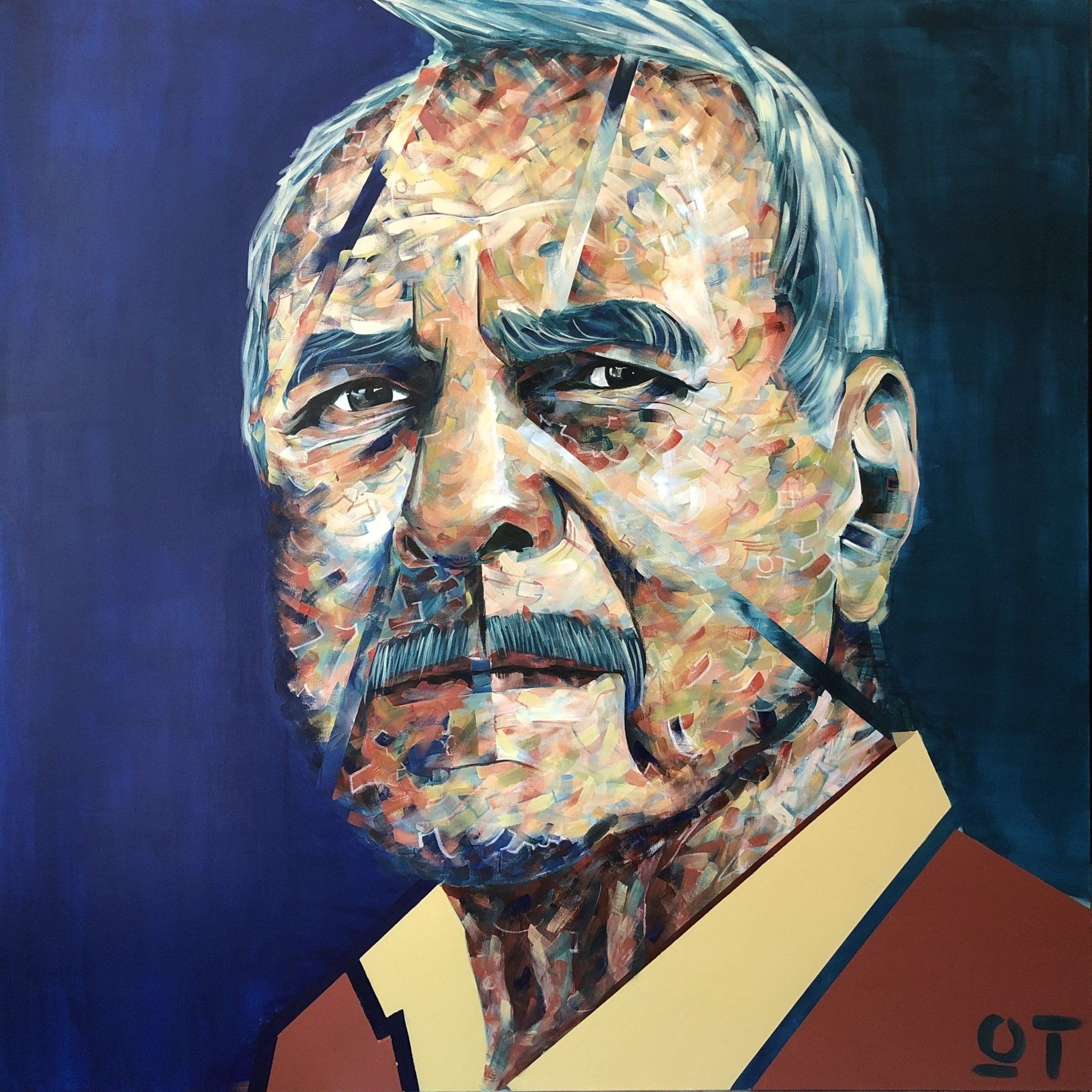 Quentin TRUTTI, PAB - It is a tribute to an old man and more generally for our ancestors and their legacy. The graphic shape of the shirt highlights the brushstroke of the face and gives to the character more authority. The gaze direction reflects the kindness of the old man. It seems that he wants to say a last word....