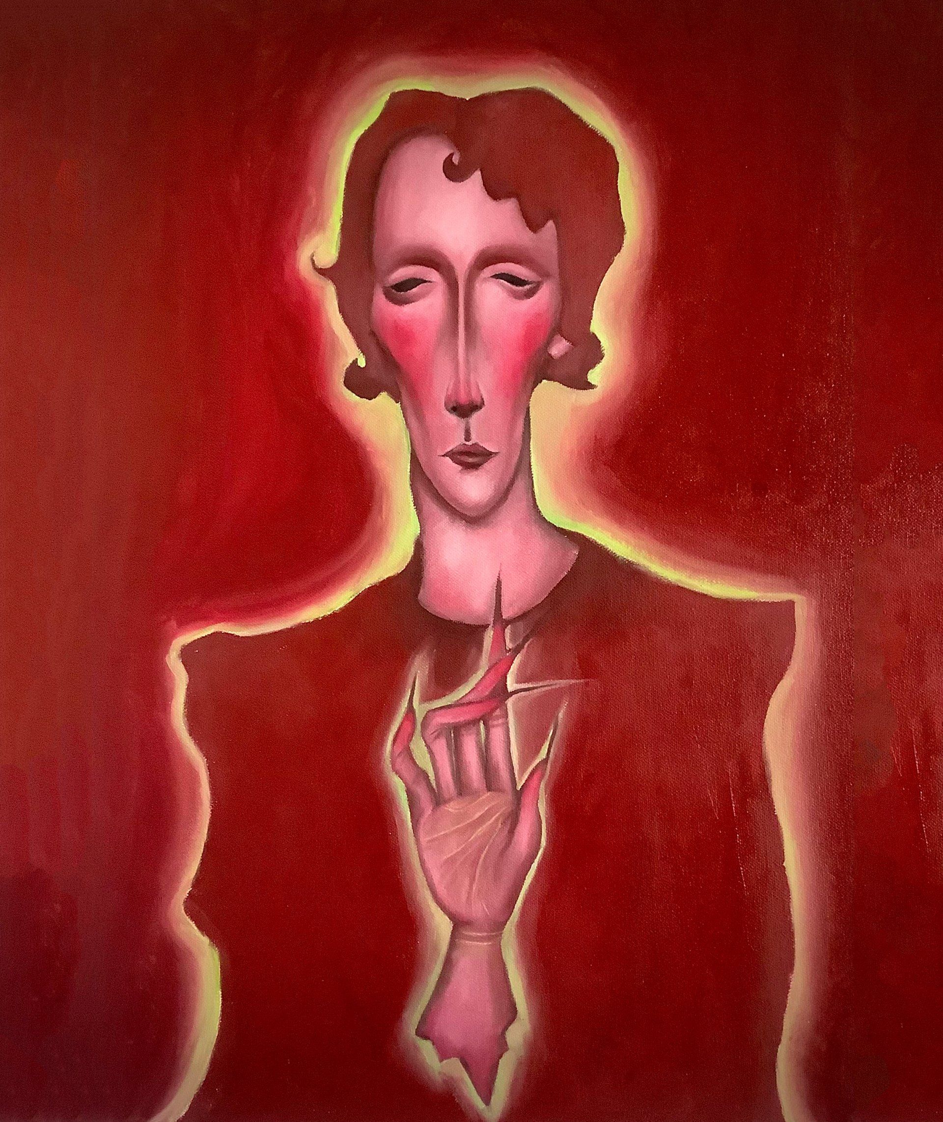 Alicia Olejniczak, Chiromancy - Doubts and questions about future are apparent in everyone’s life. Though there is more to ask than to answer many of us are constantly seeking something that would give us some insight and perspective on what will happen. Chiromancy is an ancient art of reading from palms. The lines on palms are supposed to give us some indication about our life, character and future. This painting is more of a symbolic take on the topic of the fate. The use of contrasting colours emphasises the enigmatic atmosphere and symbolism. The statue like portrait of a woman is almost as if she was eternally seized in her contemplation. But is it possible to foresee the future through the prism of the intuition?