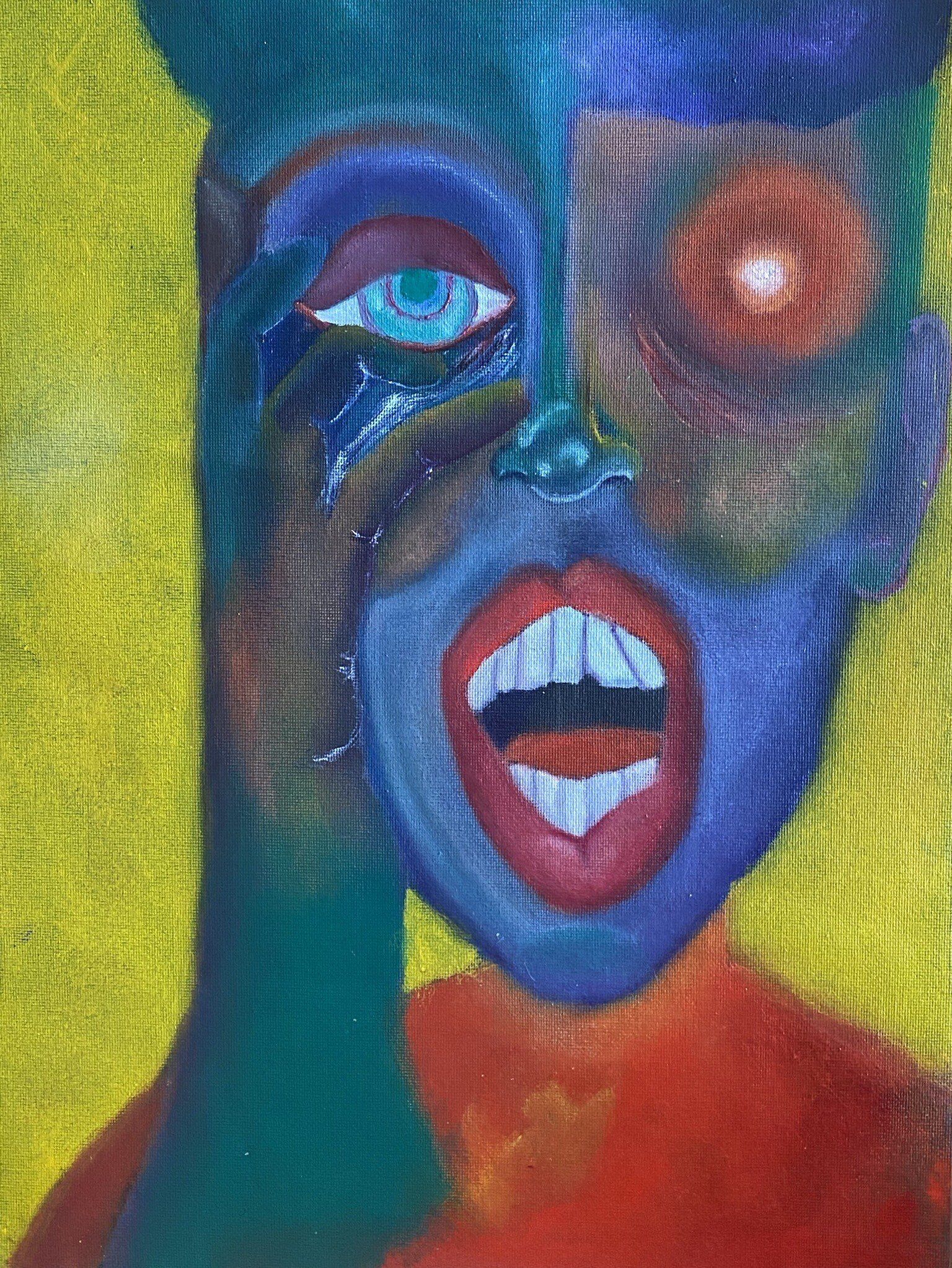 Messiah Brown, Screaming Madness (HAHHH!!!) - The message behind what I do is “Love is Art.” I create the beauty of what I see, feel, and think. Beauty does not come in one note as it has a harmony like a song that we as humans tend to overlook, such as our words we use. My artwork is like a poetic melody that one sees and feels with their eyes. I have gained better knowledge of my surroundings by indulging into the beauty that surrounds me, such as love, rage, sensuality, and divine feminine energy. I amplified my work by adding spirituality to open a world of revelations. Magic lives in the love of my artwork, and I create as I speak.