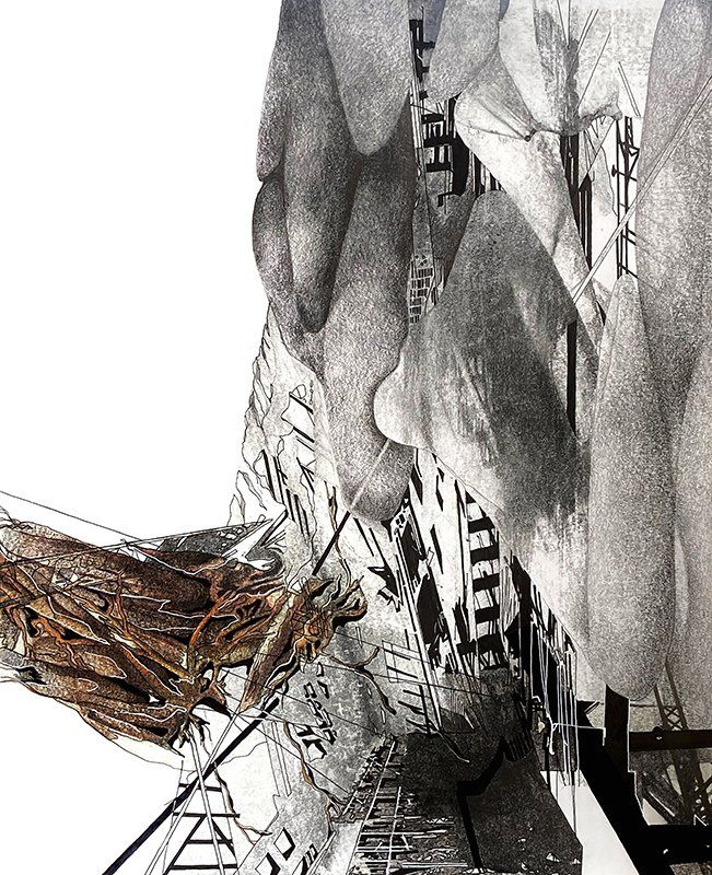 Michelle Lubin, Waiting for the End - Created during the height of the pandemic, “Waiting for the End” encapsulates my feelings of depletion and confusion, with an attempt to balance the beauty in uncertainty. In a loss for words, inspired by Linkin Park’s song of the same name, this piece and the artworks created within this same series, serve as a reminder of how music inspires art, art inspires music and simply just how essential art is towards our healing.