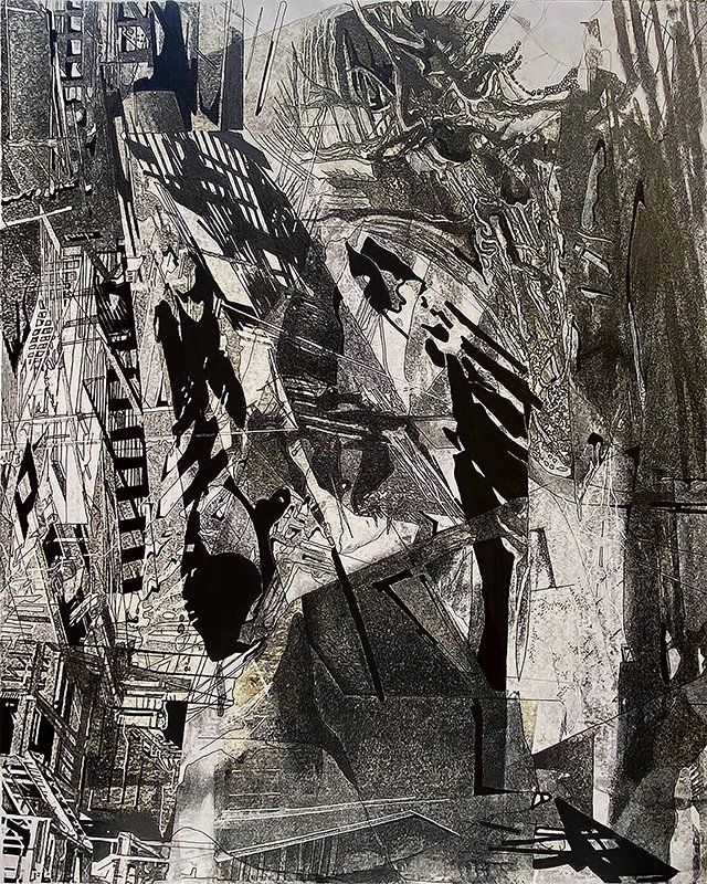 Marion Gunesch, Agitation - I painted this work in a very agitated state. The title ‘agitation’ describes it just perfectly. Bold lines and rough brushstrokes emerged with great creative urge. A china paper collage should intensify the expressiveness of the artwork with its strong contrasts. For me, “Celebration of Arts” means celebrating such moments of creation because they mean incredible happiness.