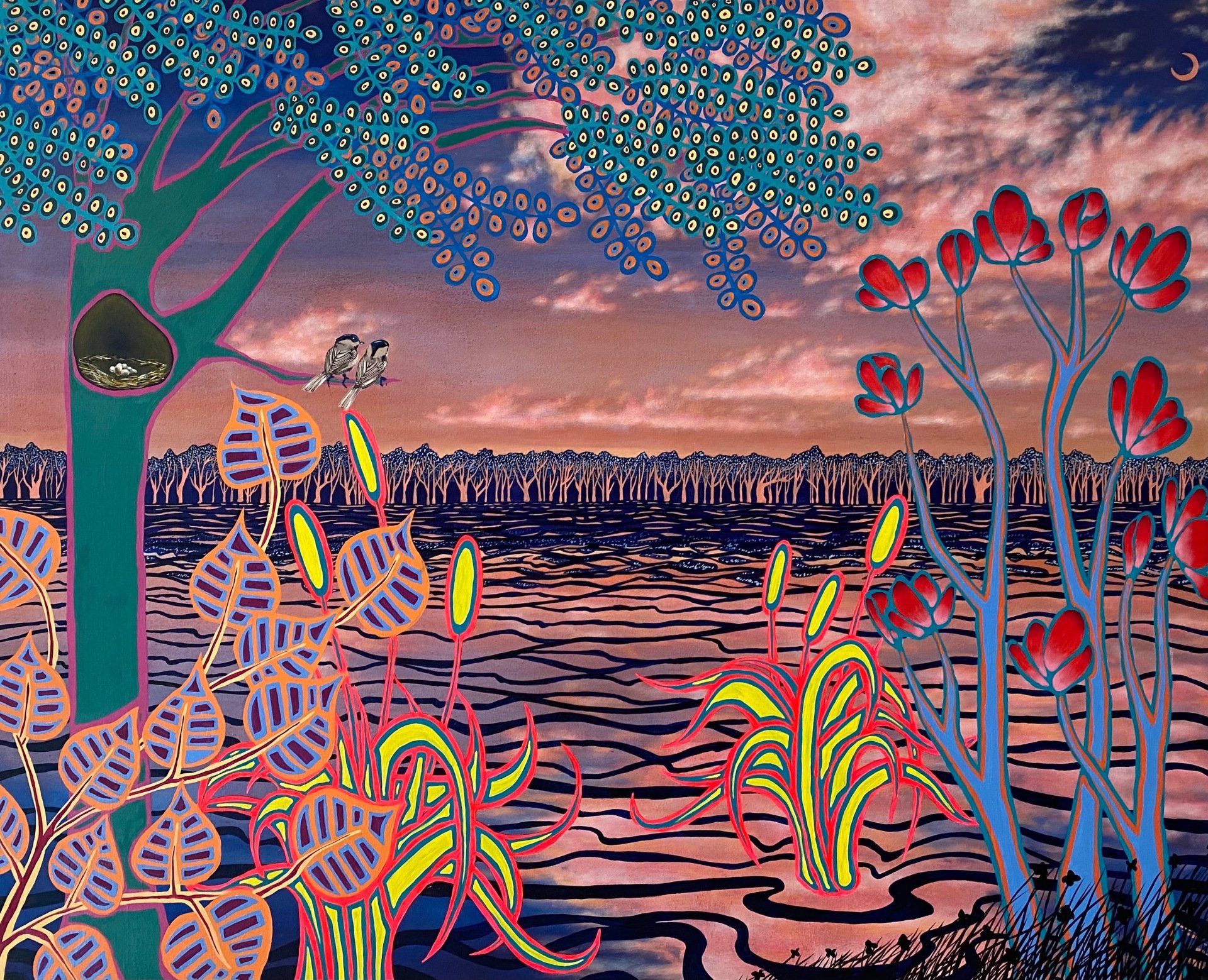 Cecilia “Cicci” Grensner, Silence - Cecilia “Cicci” Grensner paint always from her heart and soul. She start paint with acryl colors 2014 on an artclass on Hönö where she lives. Often paint nature in her own way. She like to test and try herself for new result on the canvas or wood she mostly paint on. Cecilia had her first exibision on Hönö, Konstvågen 2015. Only a year after she started paint. She has been seen there every year since last year because of corona. She had her first solo exibision Galleri Studio Animar, Stockholm november 2019.