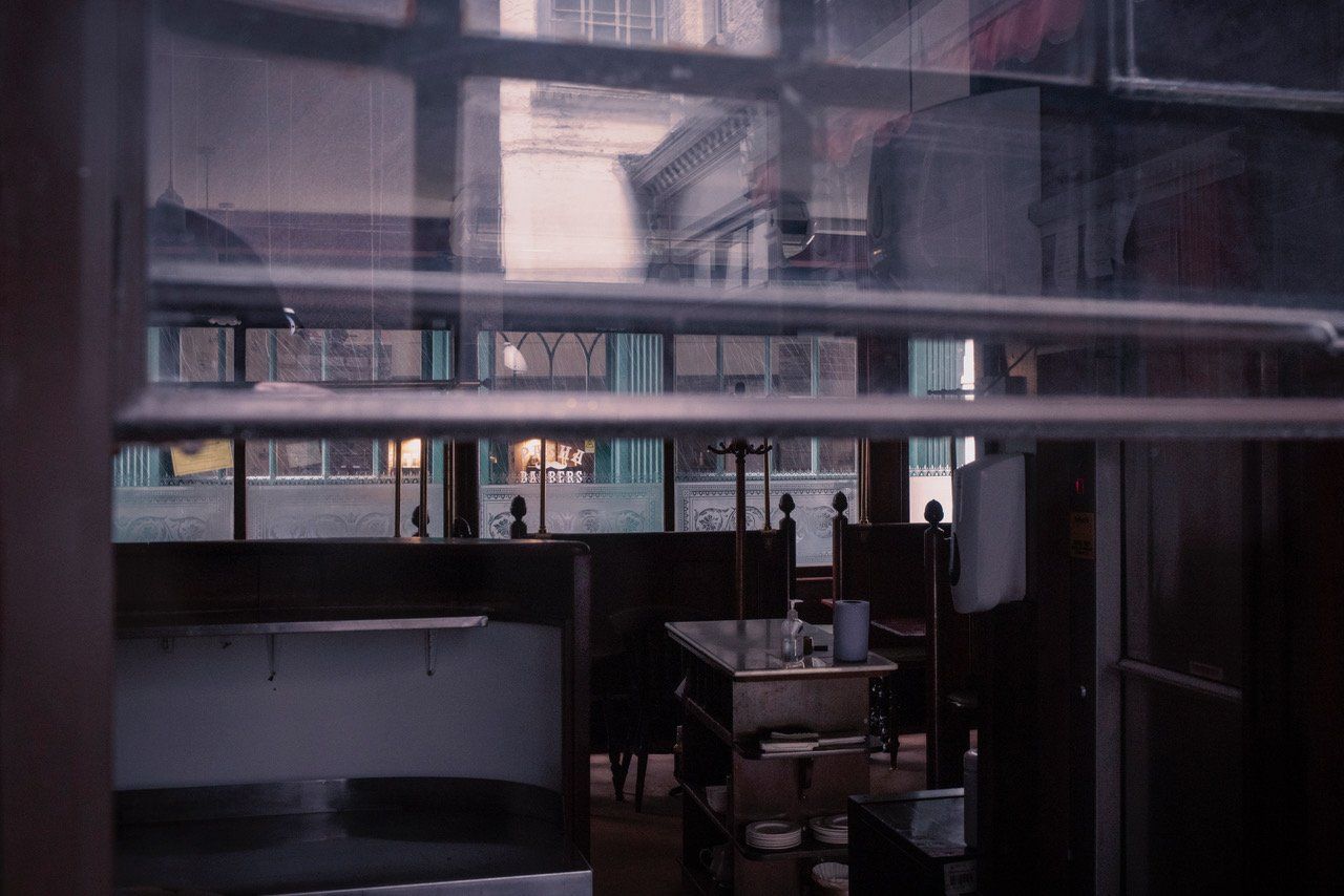 Mieke Douglas, ‘LOST SOCIETY | LOOKING IN’ - Peering into dark, empty spaces. On the outside, looking in. Camera pressed up to smeared, steamy glass. Glimpses of shiny Christmas decorations; cleaning products and hand sanitisers; abandoned drinks and occasional humour. Grasping at fragments. Struggling businesses forced to close yet again this holiday season to halt the pandemic, left deserted. Silent. Dark. Looking in as an observer, no longer a participant. Imagining the fun and the life and the noise. Visceral pleasures are tempting but still dangerous, out of reach. Our lives from before, ever more distant. The allure is becoming irresistible. Evocative and otherworldly. Unimaginable. Fading. Photographing to try to remember.