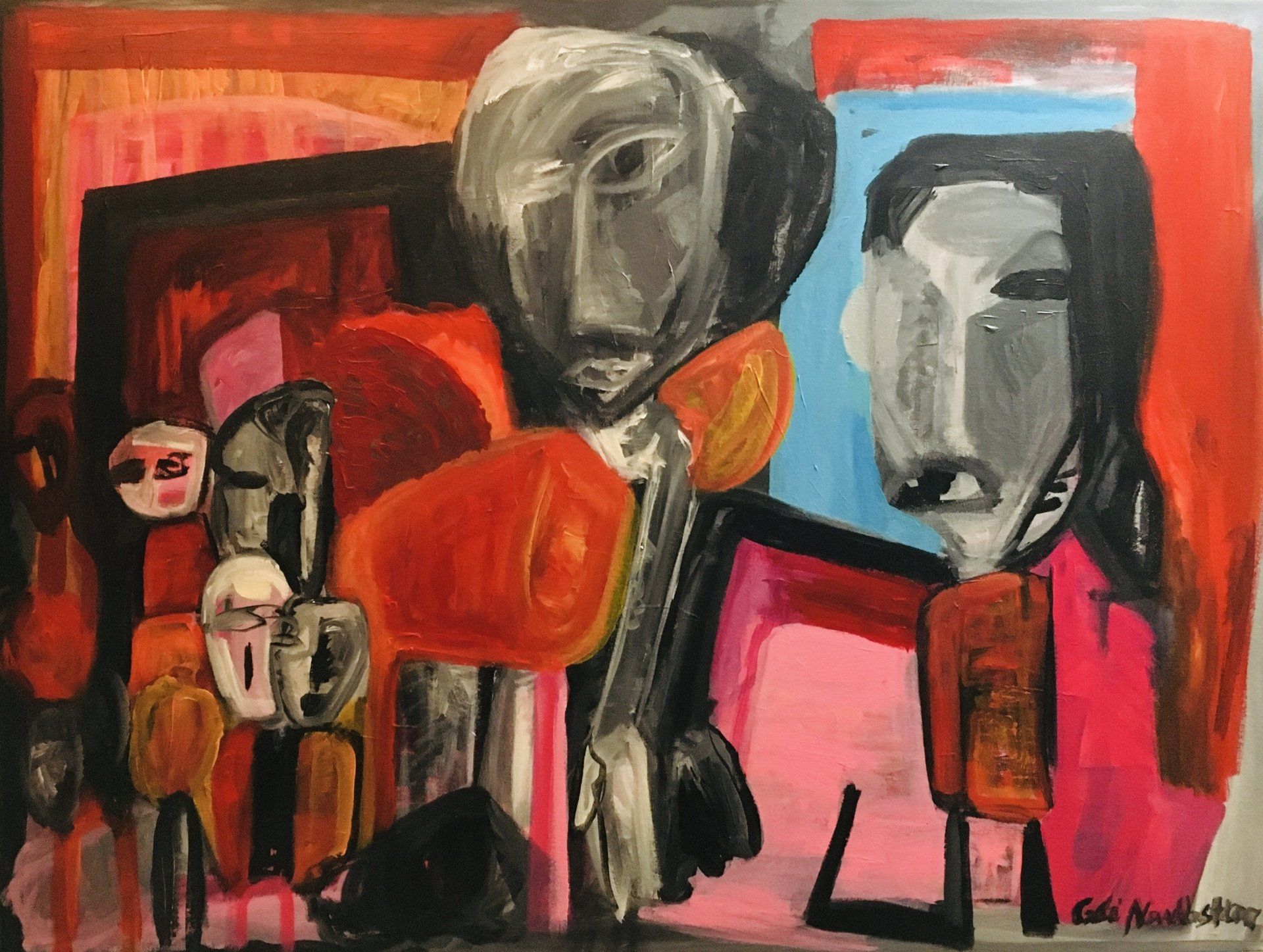 Gali Naveh-Stern, Family - Family portrays strong images of a man and a woman with what may seem to be blurred images of their children. It reflects a mixture of contrasting feelings and forces.