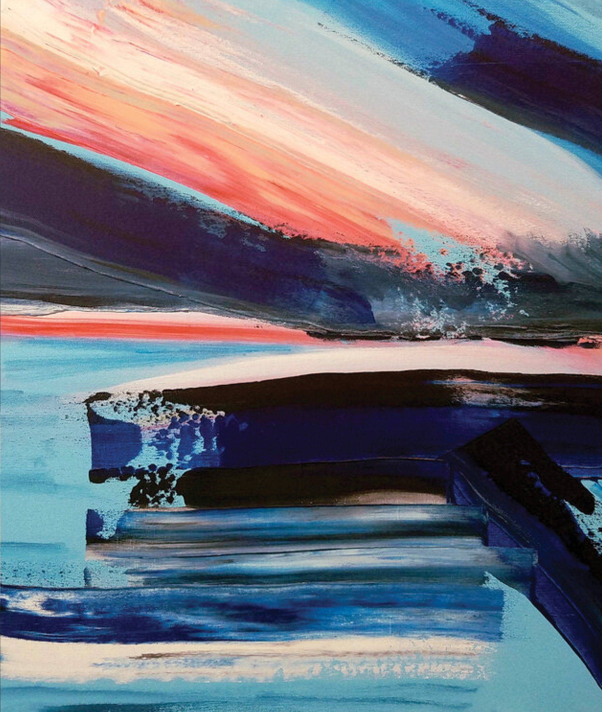 Vian Borchert, Spectrum - This painting titled “Spectrum” was done during quarantine and COVID-19 times. The painting depicts a take on an abstracted sunset with all its hues and tones. The painting is symbolic and metaphoric of a changing and challenging time where an escape to art seems to bring back much needed peace.