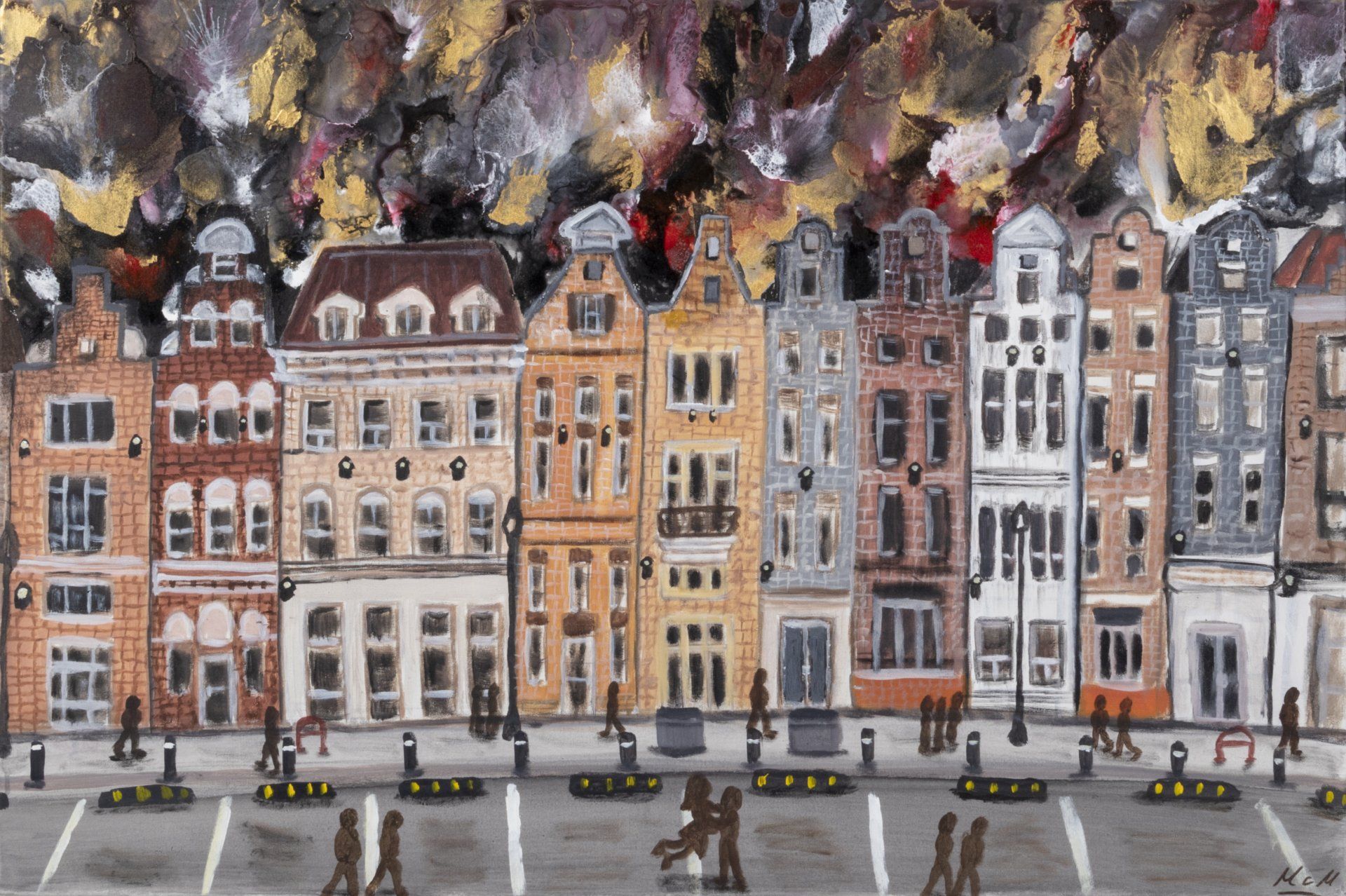Matthew Mark, Radiance in Manchester Square - I painted this piece of an actual real location in my city. It consists of being a new strip mall for new businesses in shopping and retail to emerge. Ever since the pandemic it has been a difficult time to open a new business or to keep one going. The economic fallout has been hit hard to many. I would hate to see this type of location become empty like a ghost town. The architecture of this building is very modern and European giving it a feel as though your actually over in England. I hope during the post pandemic period that this location blossoms, excels and remains to stay in that community for many years to come.