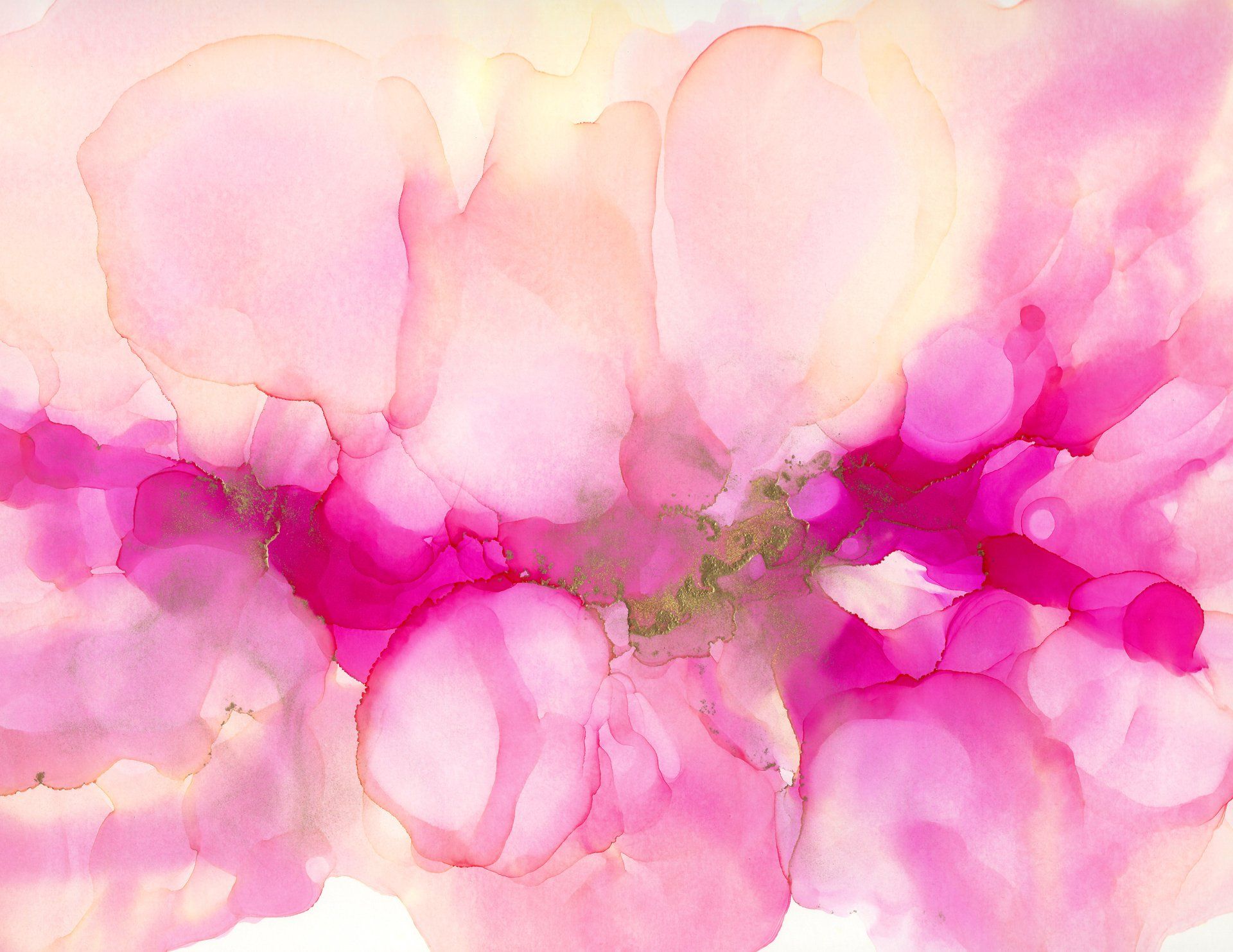 Soo Kim, Pink River - Imagining a fairyland of botanical gardens with a pink river running through, this piece was created by blending pinks, oranges, and yellow alcohol inks with a blow pump. My Story: My father was a workaholic and growing up in this family, I was subconsciously trained to become one too. To support my family, I’ve studied graphic design and became an art director working for Revlon fragrances in the heart of NYC. However, I’ve always craved an outlet, to ‘let go’ of all my fears and anxiety. I stumbled across alcohol inks and it has healed me and my viewers since. I believe it’s a form of therapy for myself and others.