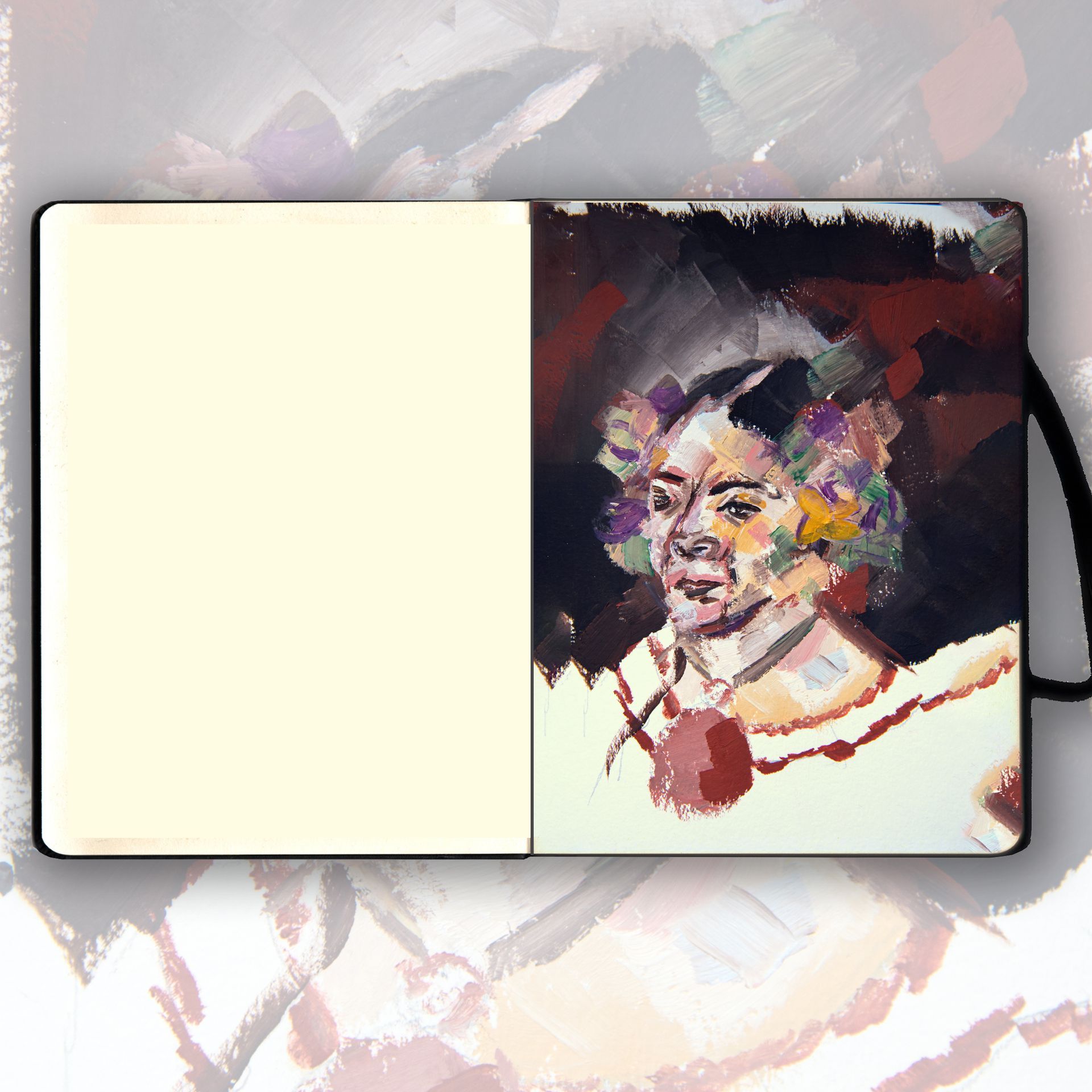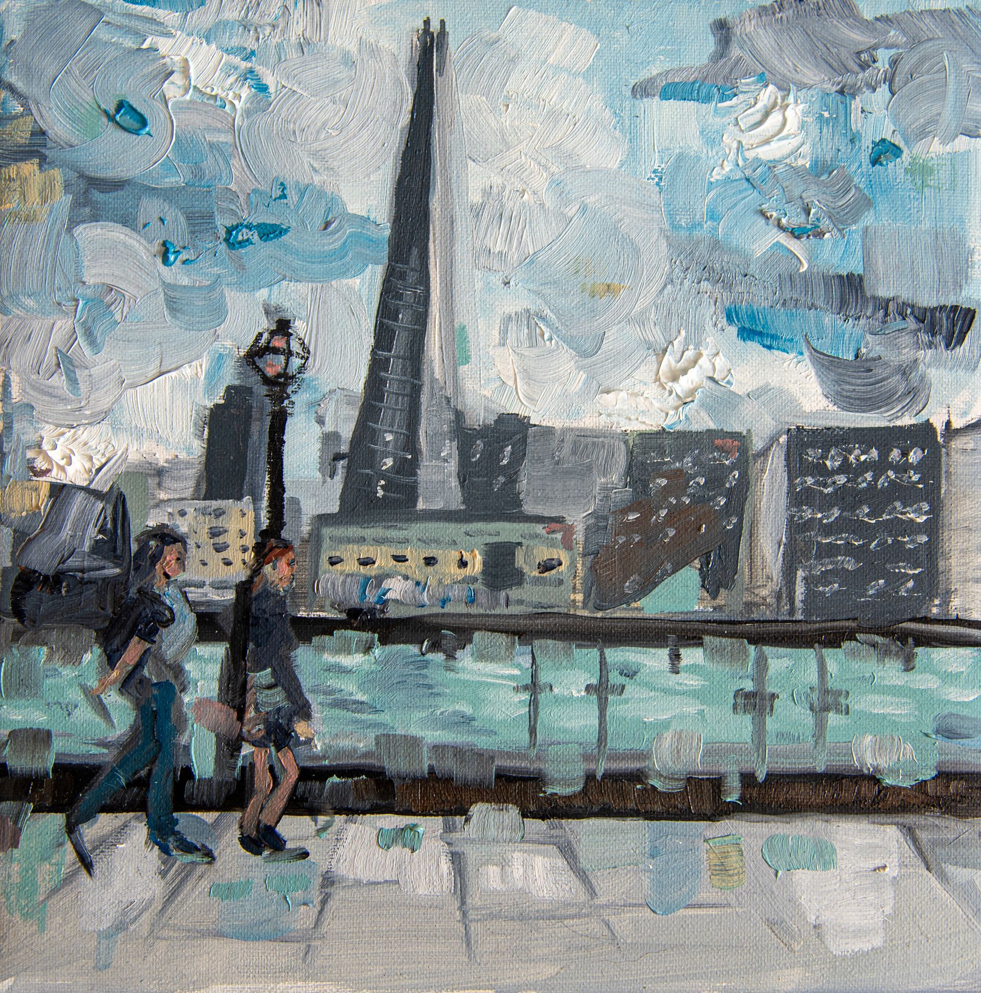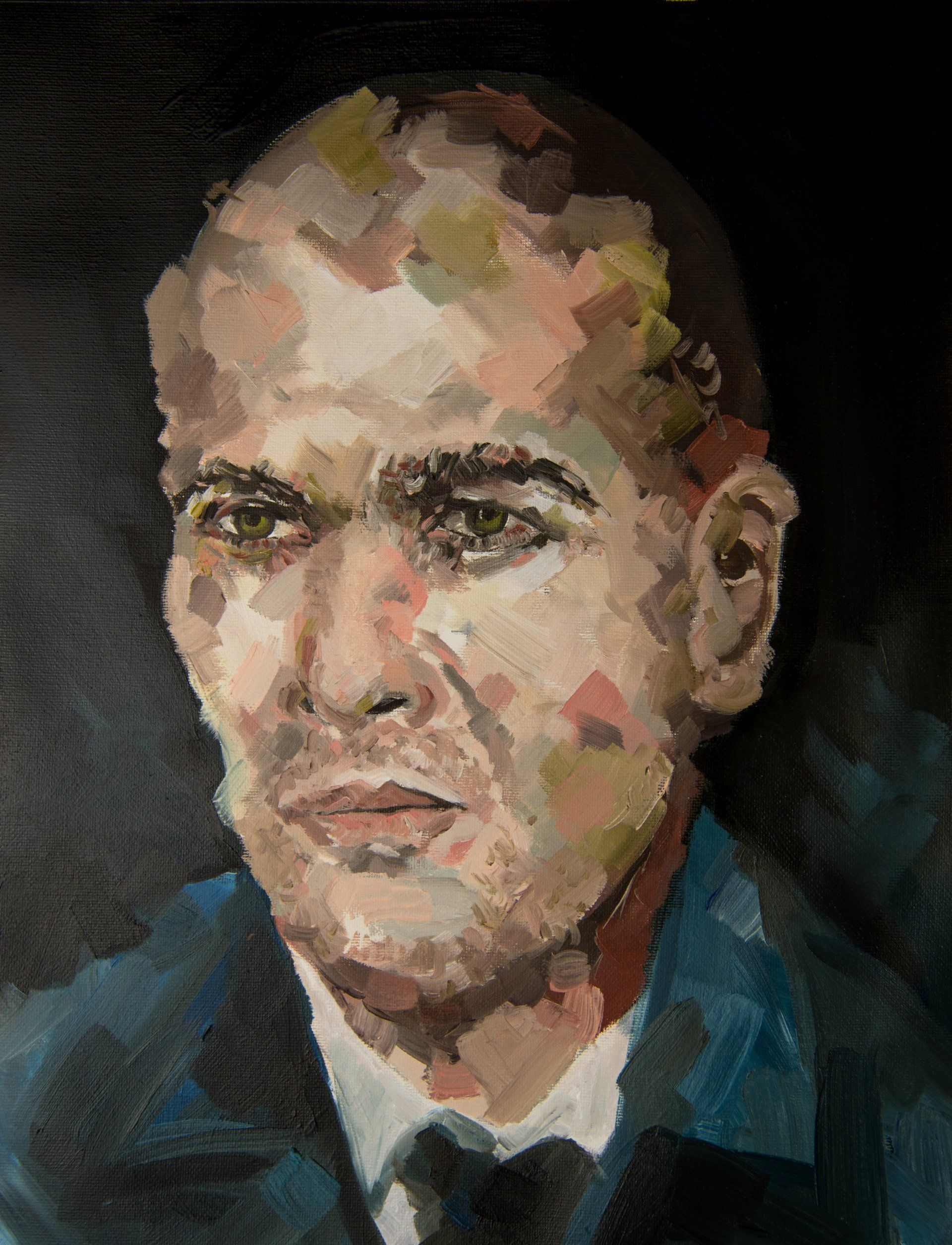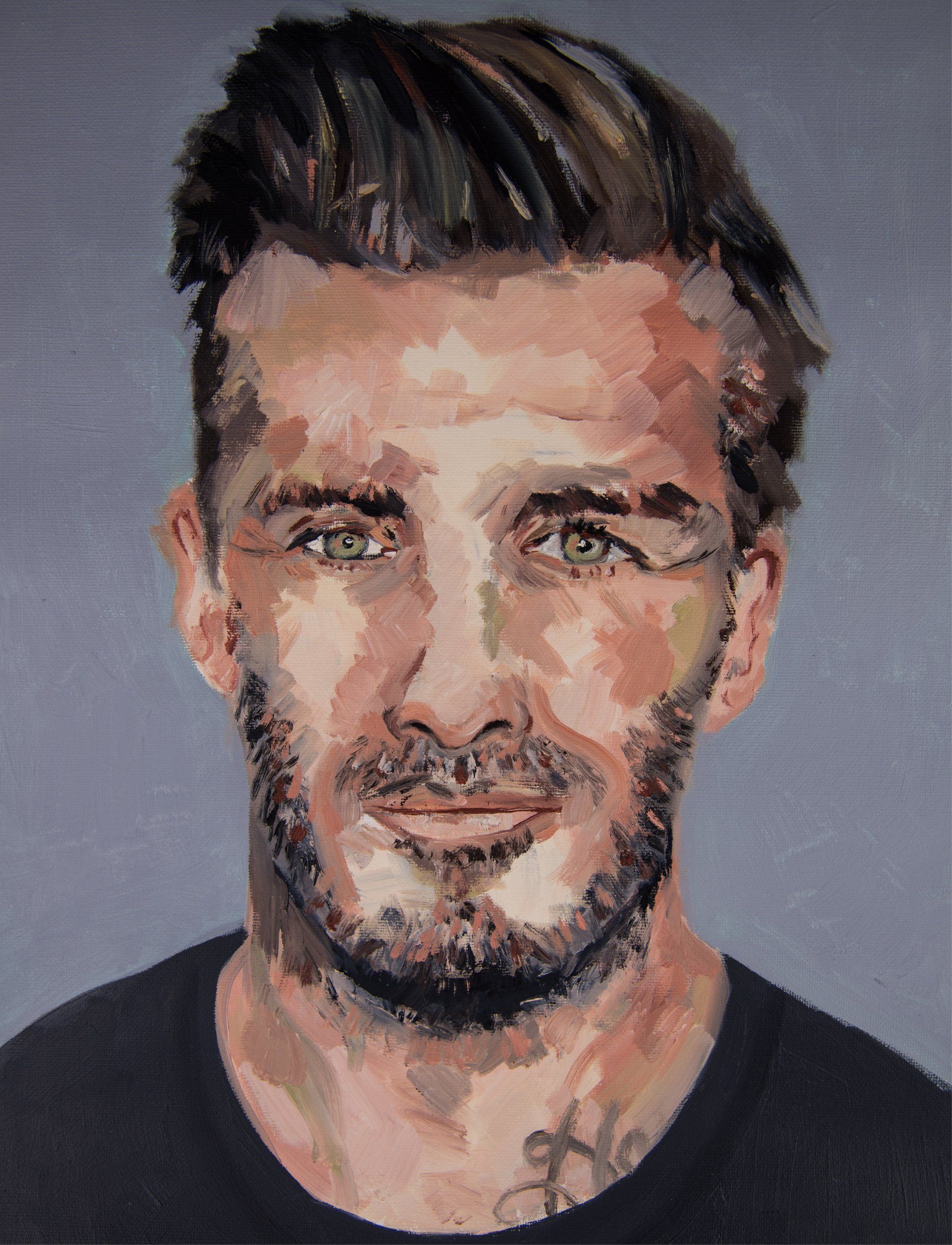 The theme of his work clearly betrays a fascination for people and landscapes. Focused by this allure he paints family, friends, and complete strangers that can be found walking amongst us. The resources used are oil on canvas, furthermore some are painted direct on to an ipad using a digital brush that has the same effect as oil, but without the drying times.