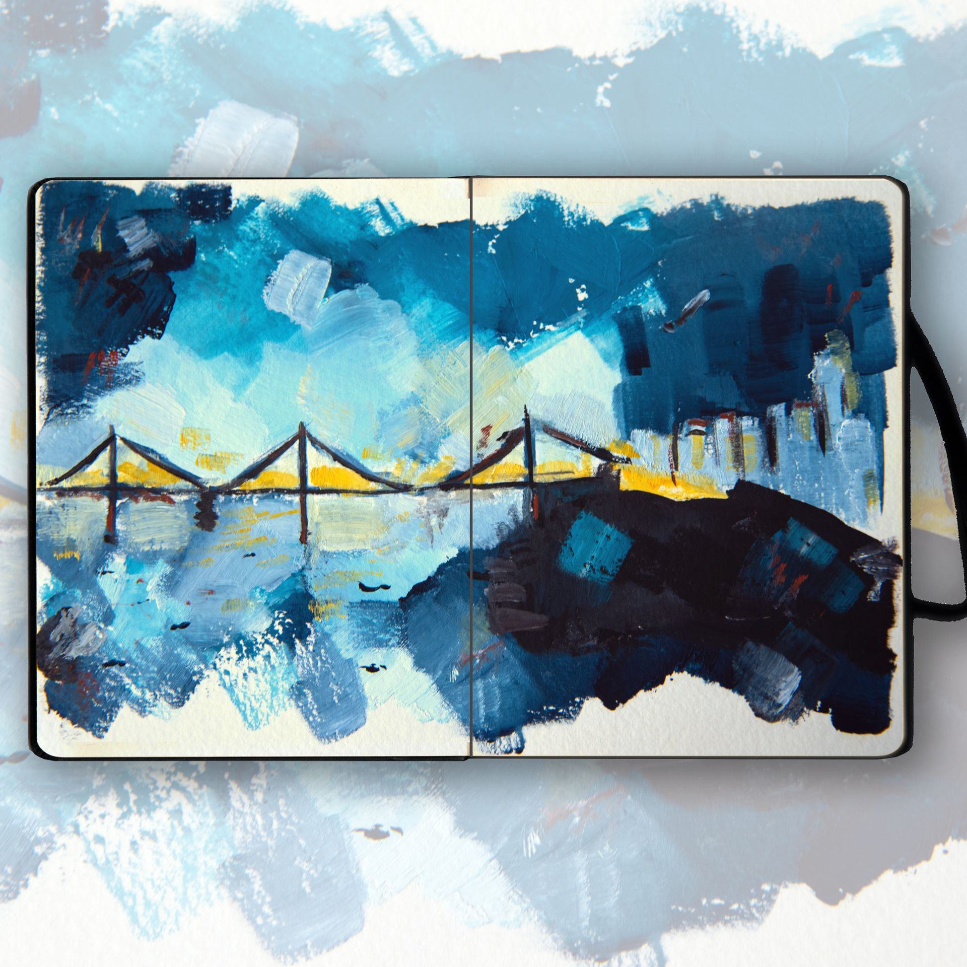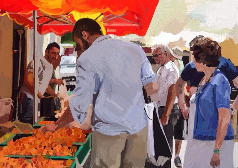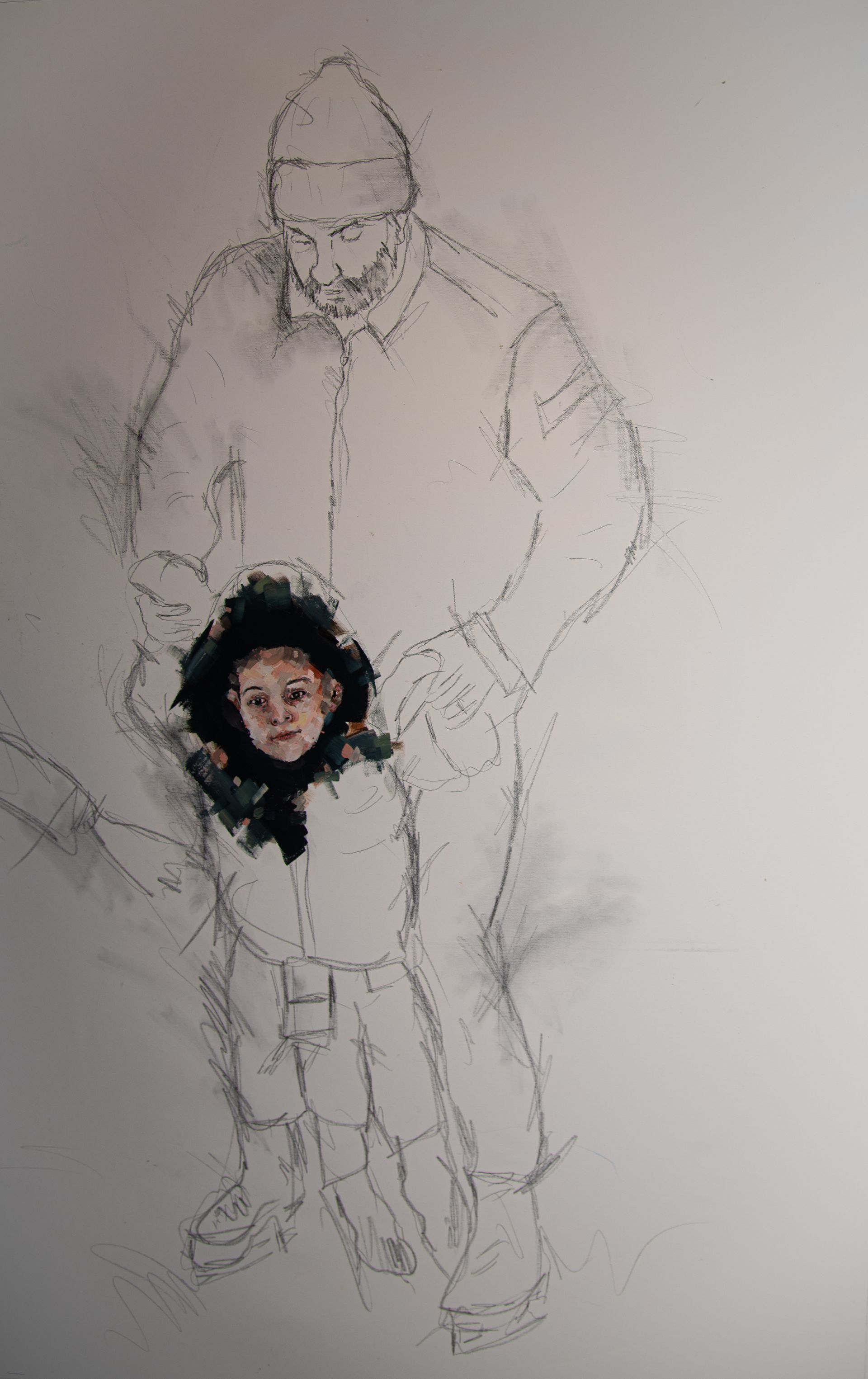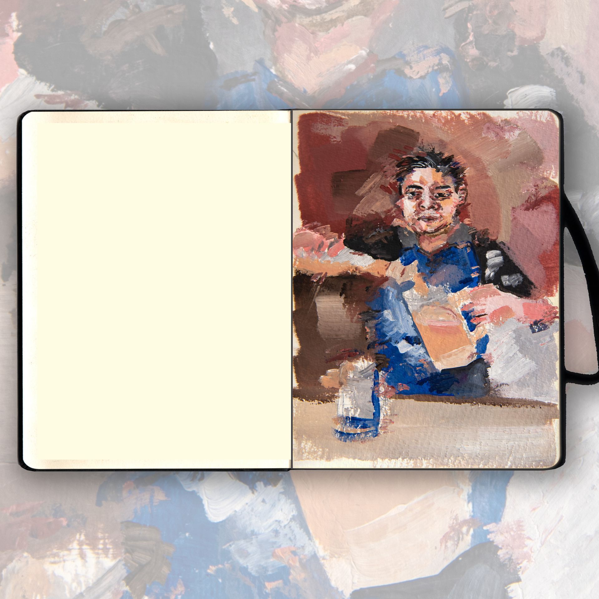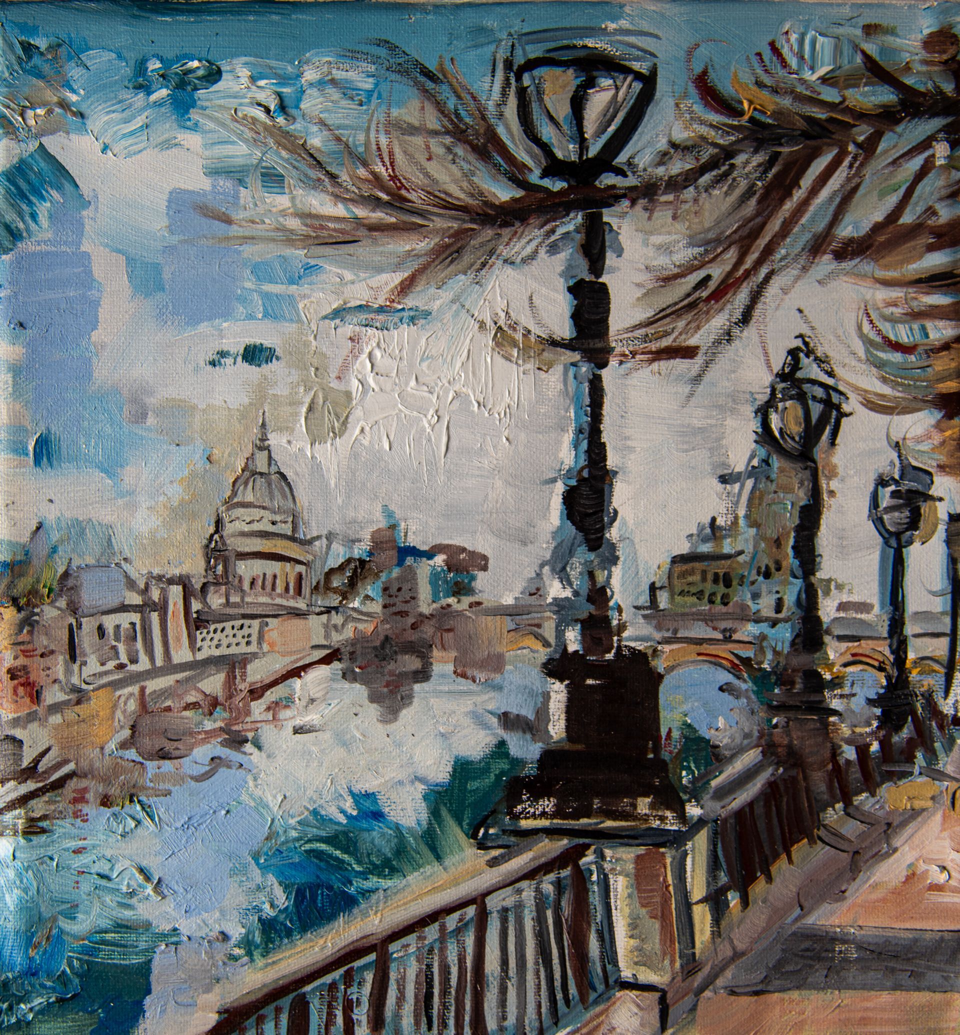 The theme of his work clearly betrays a fascination for people and landscapes. Focused by this allure he paints family, friends, and complete strangers that can be found walking amongst us. The resources used are oil on canvas, furthermore some are painted direct on to an ipad using a digital brush that has the same effect as oil, but without the drying times.