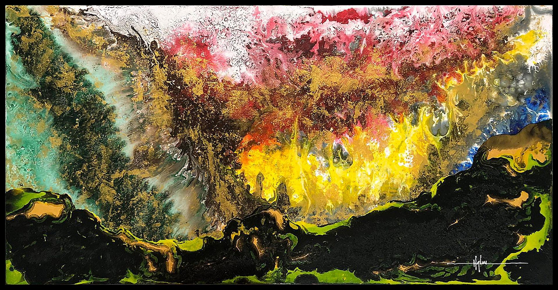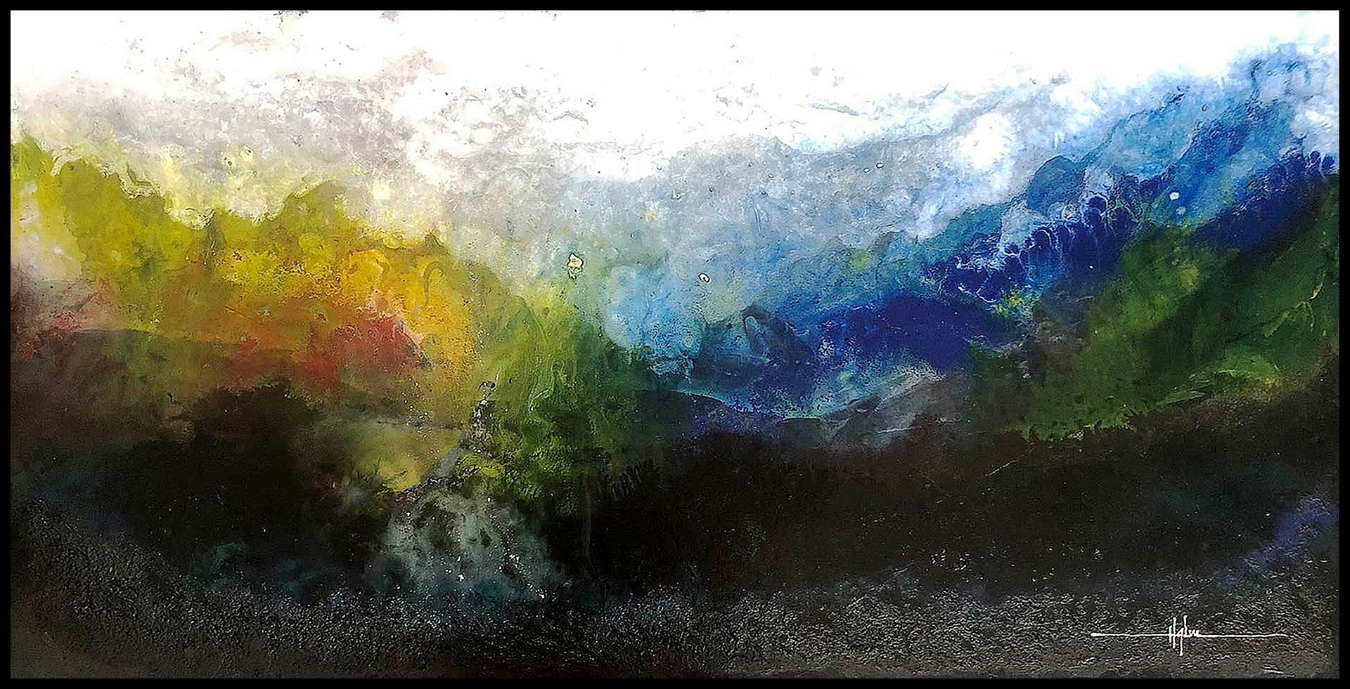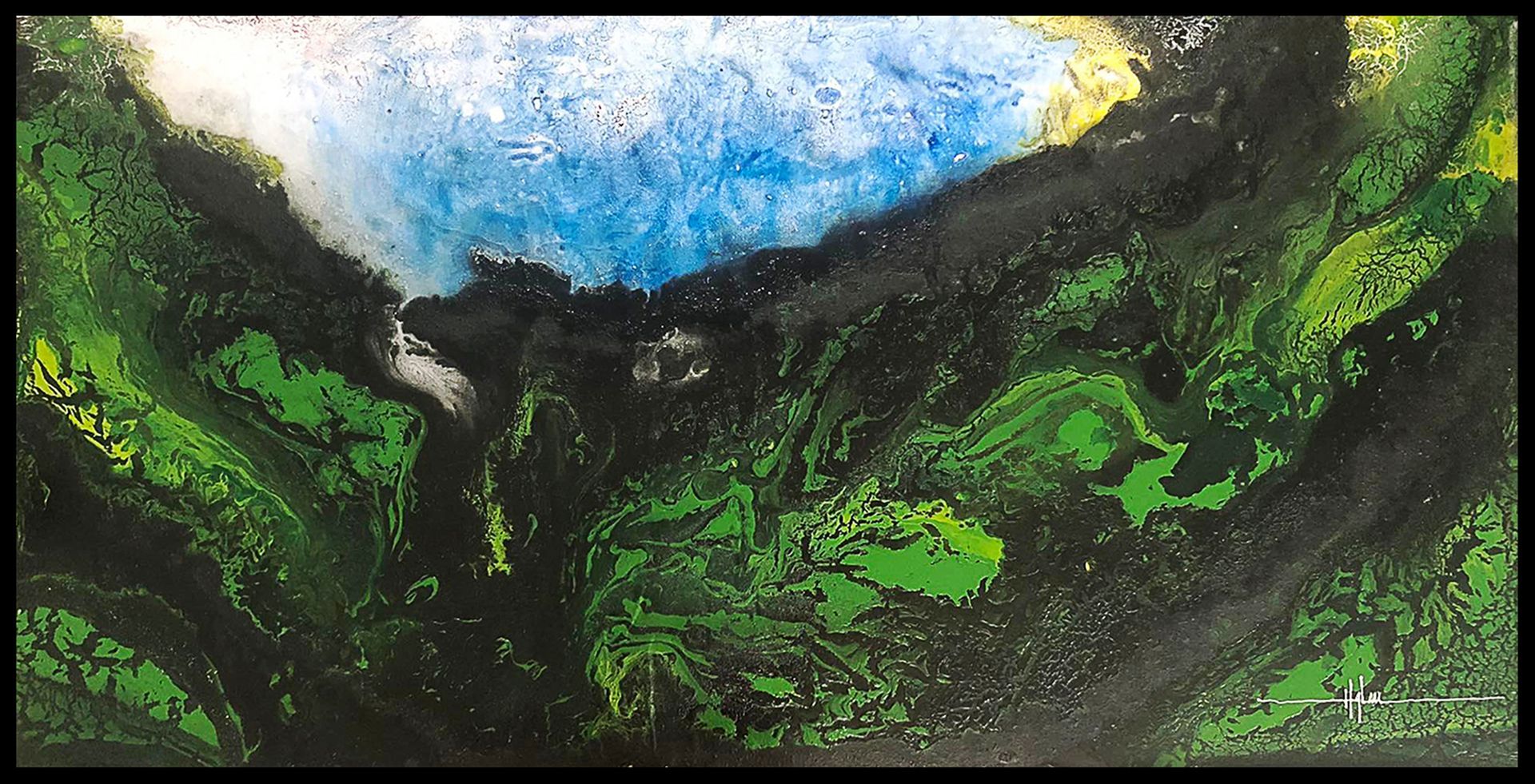I have been passionate about drawing since I was a child and now I choose abstract paintings to convey my passion and inner thoughts. In my opinion, looking at abstract paintings is a good way to nurture emotions, because they are not bound by specific limits, but are freely felt and imagined in each person's own way. I often realize that each person's feelings according to their imagination are sometimes far from the author's ideas. But I like that difference and respect and open my heart to accept it. Currently, I am living and working in Vietnam, I create paintings with the theme of landscapes in an abstract style, my works are inspired by nature and what is happening in the world. In my creative process, I often use materials such as dark acrylic and Indian ink on papier-mâché on non-woven fabric and pasted on format to create solidity for the work.