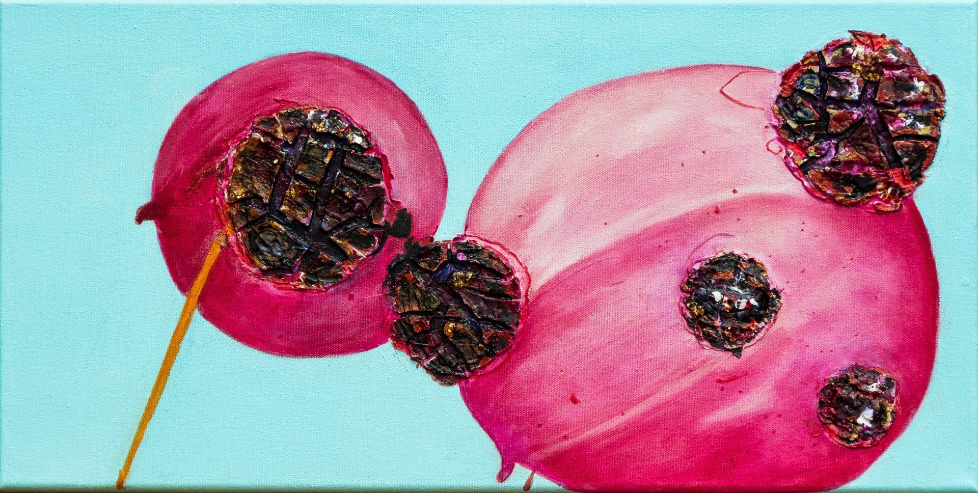 Sheila Romard, Tethered - This painting depicts my reflections on our collective despair, in particular people trapped in abusive relationships during this time of isolation due to Covid. We’re fragile, tethered to a world which at times seems to be crumbling around us. Will we emerge from isolation stronger, more resilient or weakened? With this painting, I also share my hopes and prayers that we will be made stronger, and freer.