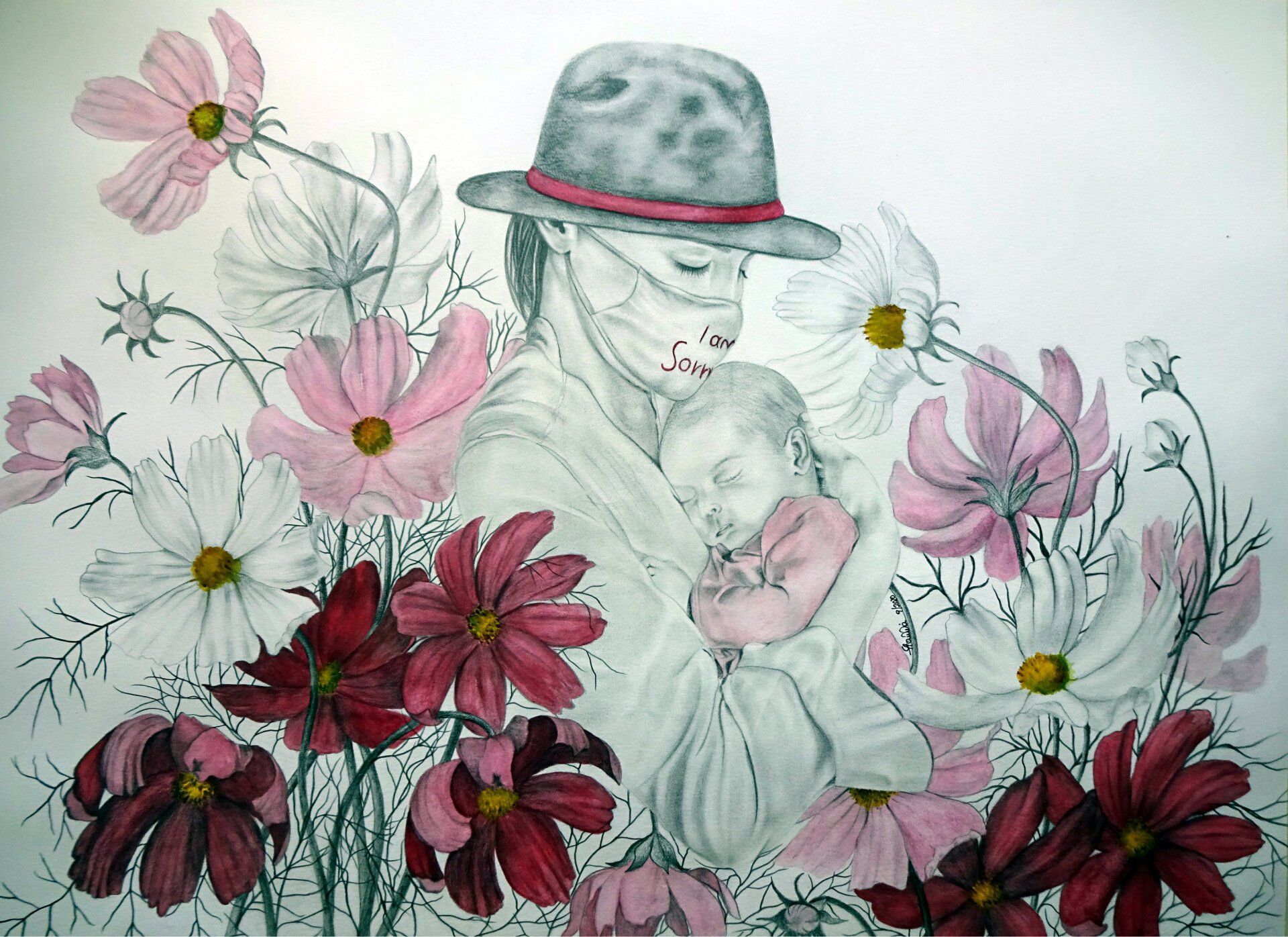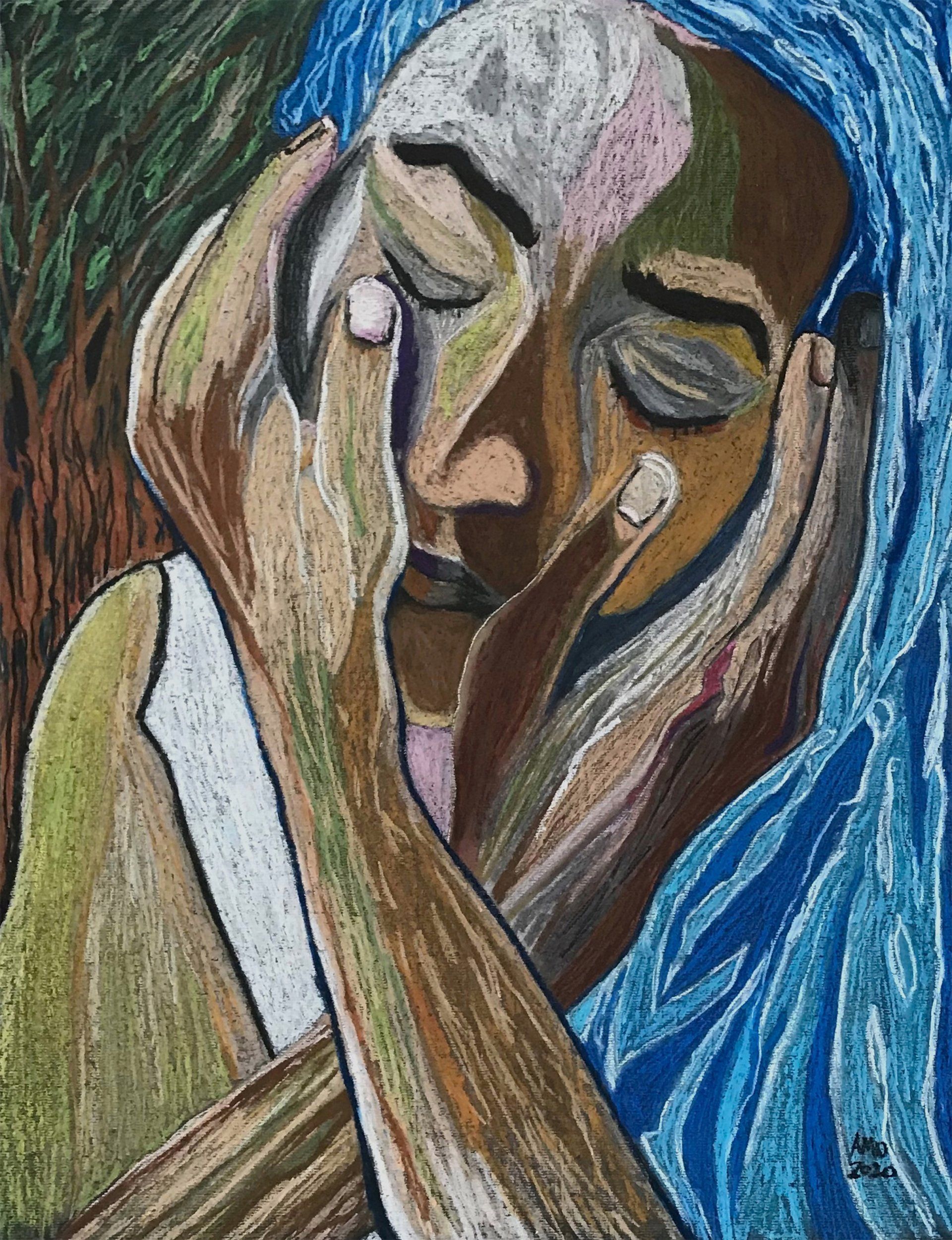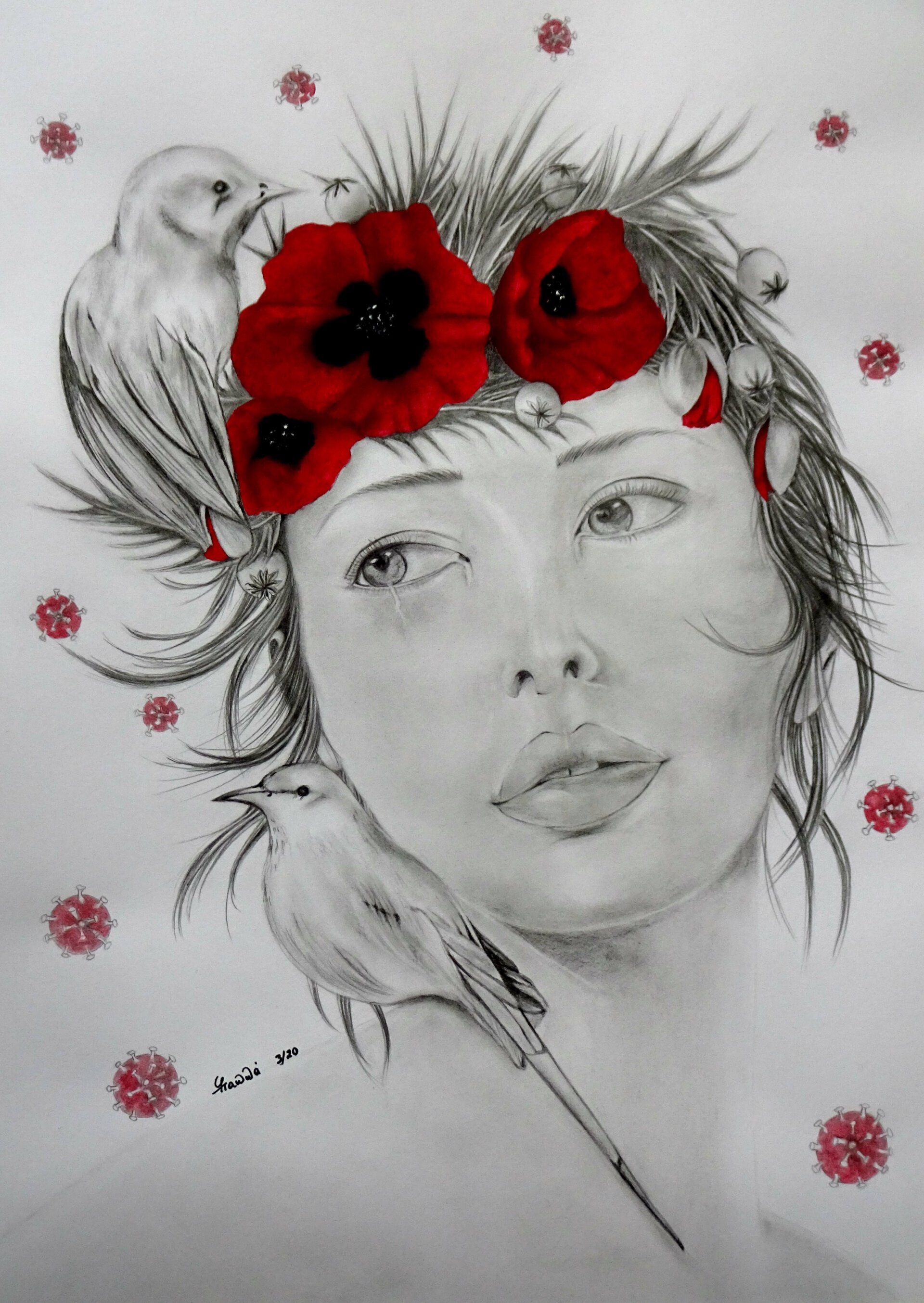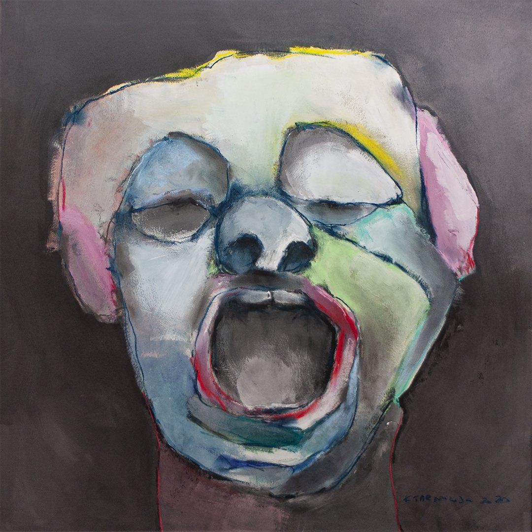 Fotini Pappa - The source of inspiration for the works “Sad Spring 2020 - covid 19” and “KARANTINA-covid19” is locked in the spring. The works “I Am Sorry - Summer 2020 - covid19” and “the scream” were created afterwards. They were created by the thirst of the soul. Cause the empty hug, the lack of a smile, the tender touch, the incredible emptiness of the soul, the longing to see my children and grandchildren. An invisible veil covered everything. And all of us trapped, we beg to stop, to quench the thirst of our dehydrated soul.