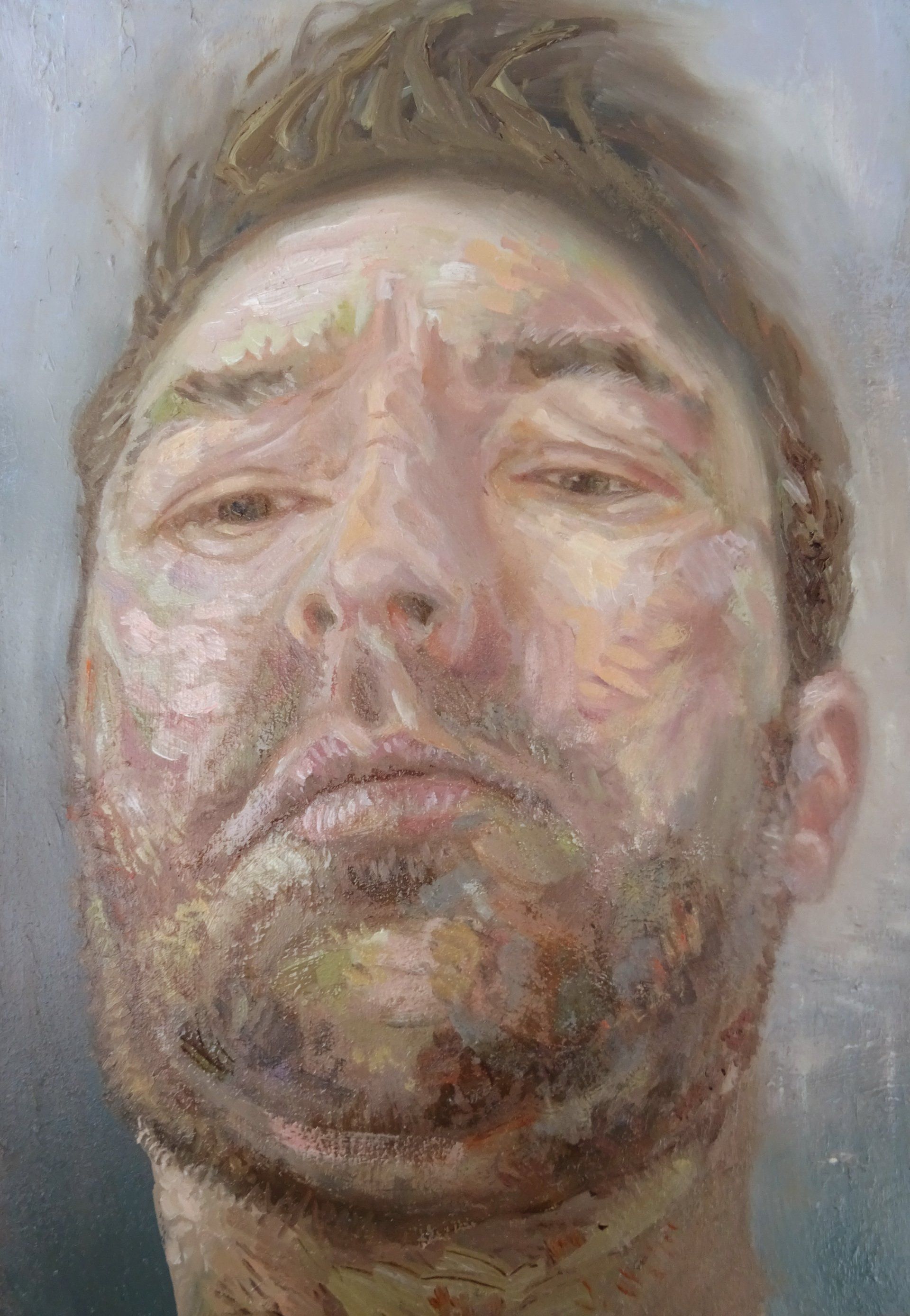 Shane Gannon, Before the Flood - This work is one of many self portraits I painted during lockdown. For me lockdown has been a time of self reflection, of looking at myself and asking where I am going in life. I called this painting ‘Before The Flood’ because Covid 19 felt like it was the end of the world, or at least as we know it. It echoed prophecies from religion and folklore. Ive now come to believe that, perhaps the questions I’ve been asking myself are ones for humanity also.
