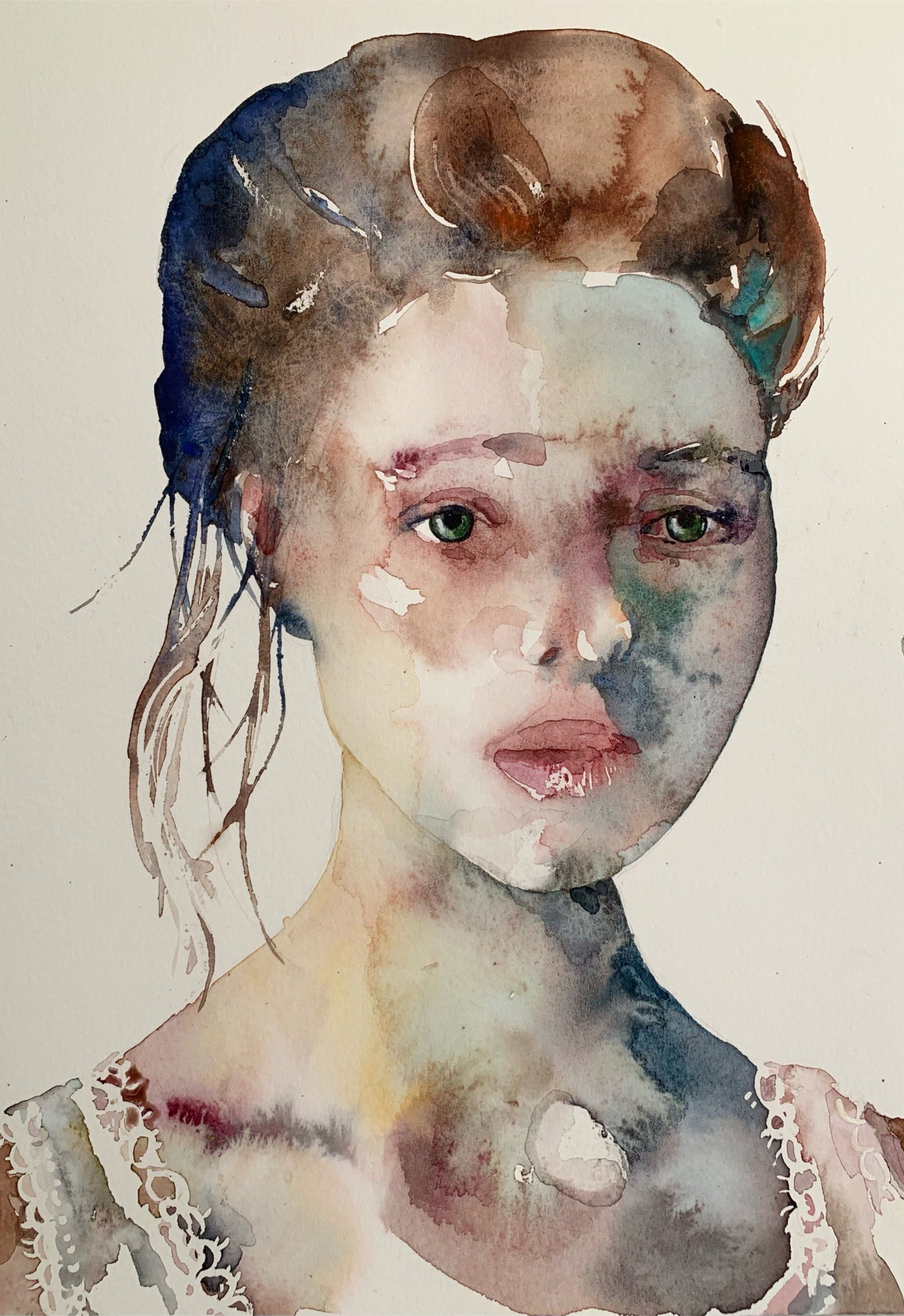 Sarah Harvey, Lace, Watercolour, 21 x 30cm - Over Lockdown I was unable to access my painting studio where I paint large scale oils of figures under water, some paintings are 20 meters in length. Early in lockdown, I rekindled a previous relationship I had with Watercolour which has been my saviour. Suffering from severe highs and lows through the pandemic like many people, painting has been my daily meditation, and it’s been amazing to concentrate my efforts on a whole new medium.