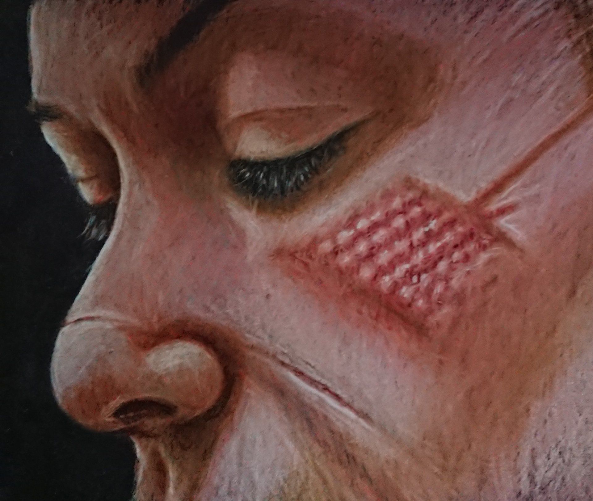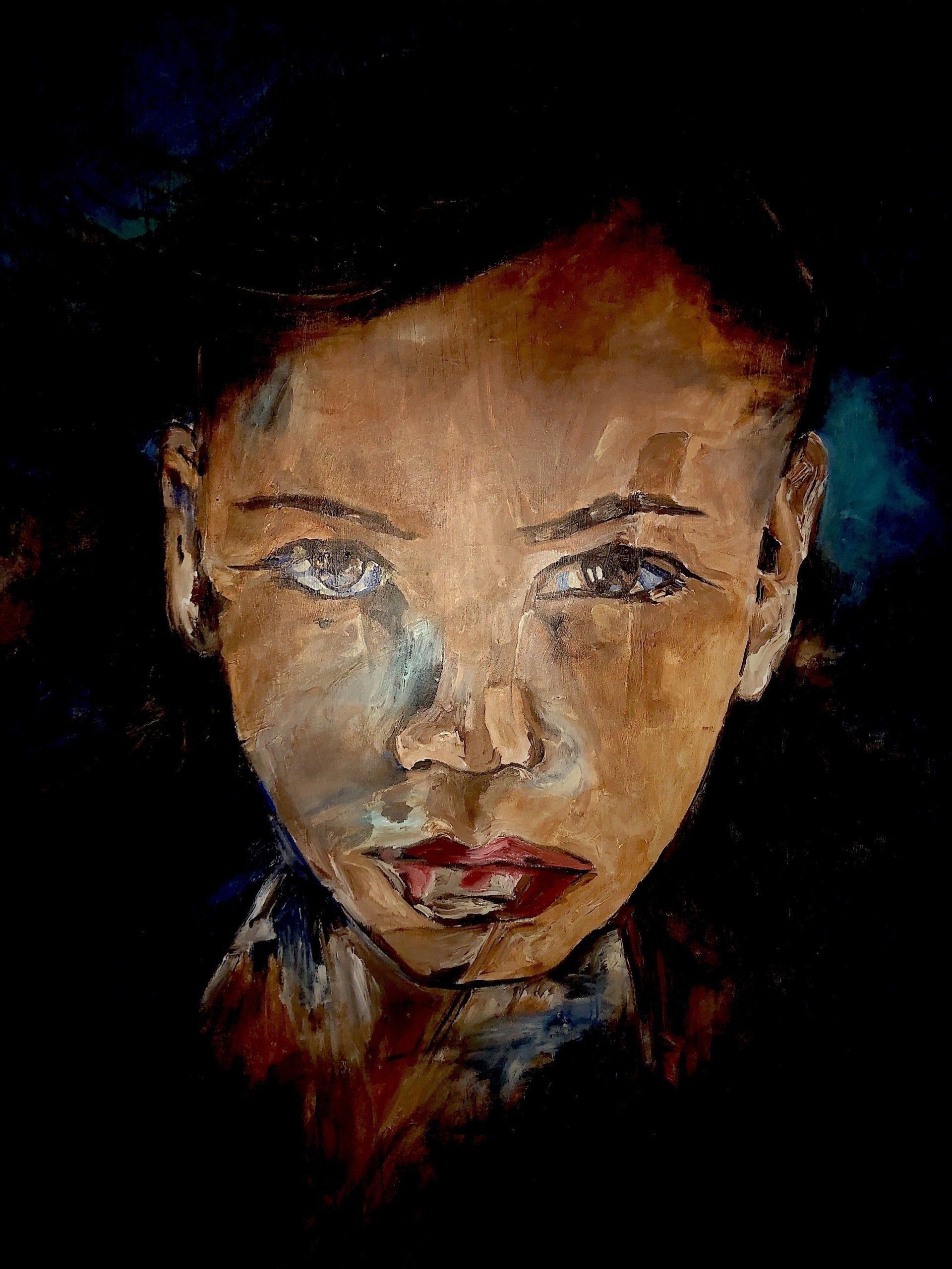 In this painting ‘Lace’, you can see the young girl appears to have great sadness in her eyes. She looks past the viewer into the distance. This has been a response to my own feelings during this challenging time.
