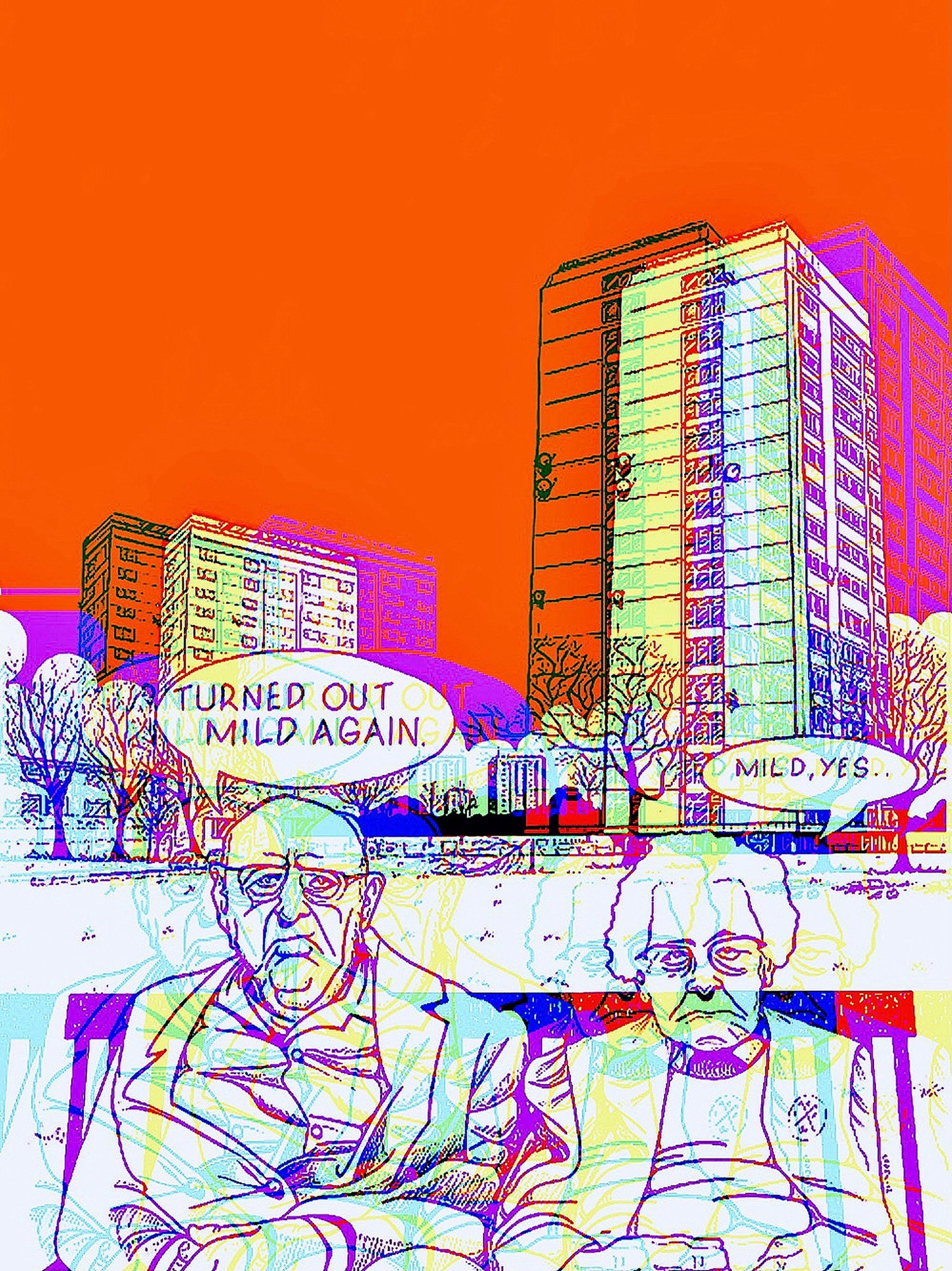 The Finsbury Park Deltics, Turned Out Mild - Amid all the pronouncements to treat boredom as a positive opportunity to learn something new (WTF?), I got to thinking how some older people might be feeling as they’d been cut off by law from their loved ones, often the only people they ever saw. Naturally I chucked in a medicated haze and a boiling sky for good measure.