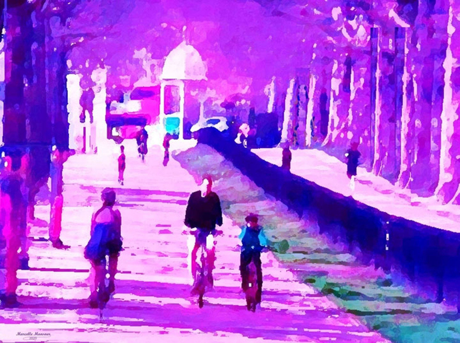 Marcelle Mansour, Digital Painting, Social Distancing in the Street, 2020