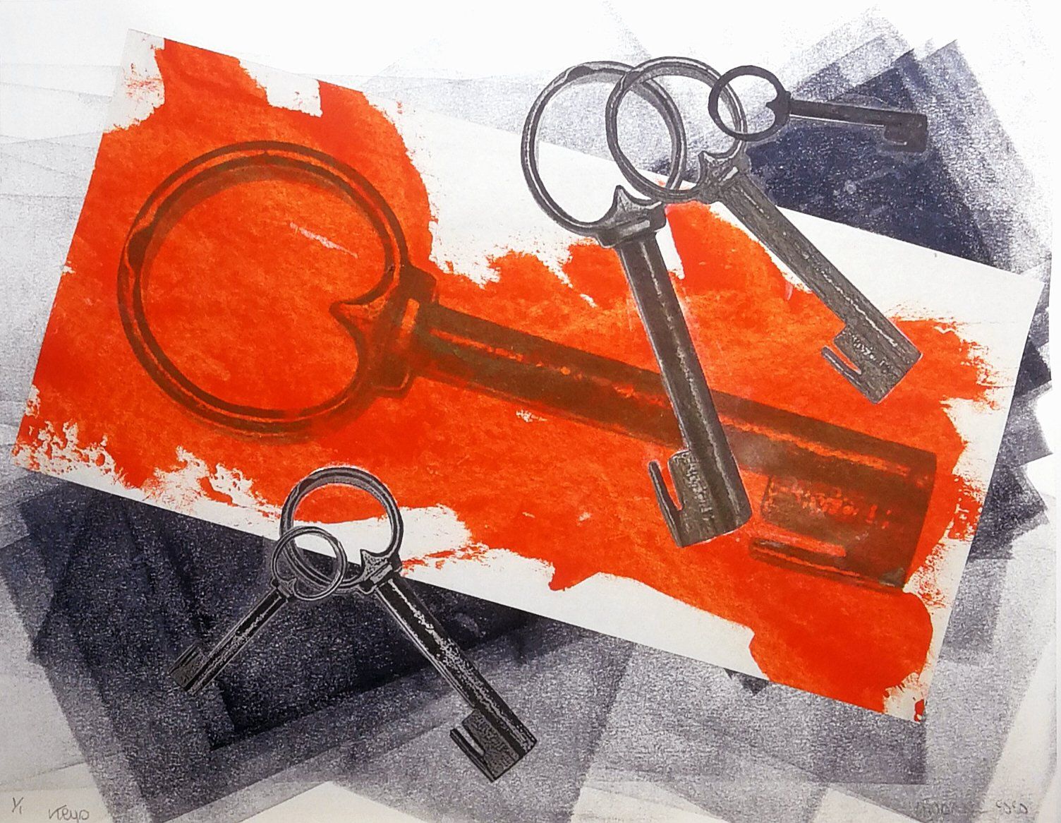 Carmen Lindahl, Keys - My work is one in a series that depicts multiples of an old chest key. In a period of cur few and lock downs we are all isolated and bereaved of social contacts. Keys serve as a symbol for our way out to the normalization of life we all long for. One day we will turn the keys to our doors and step out into a landscape that will be familiar but also that will have changed. Today we are not really sure how much of change there will be. With my keys I give the onlooker an incentive to reflect over this. Keys are also traditionally good luck symbols. When three are worn together, they unlock the doors of love, health, and wealth. That is what we hope for once outside.
