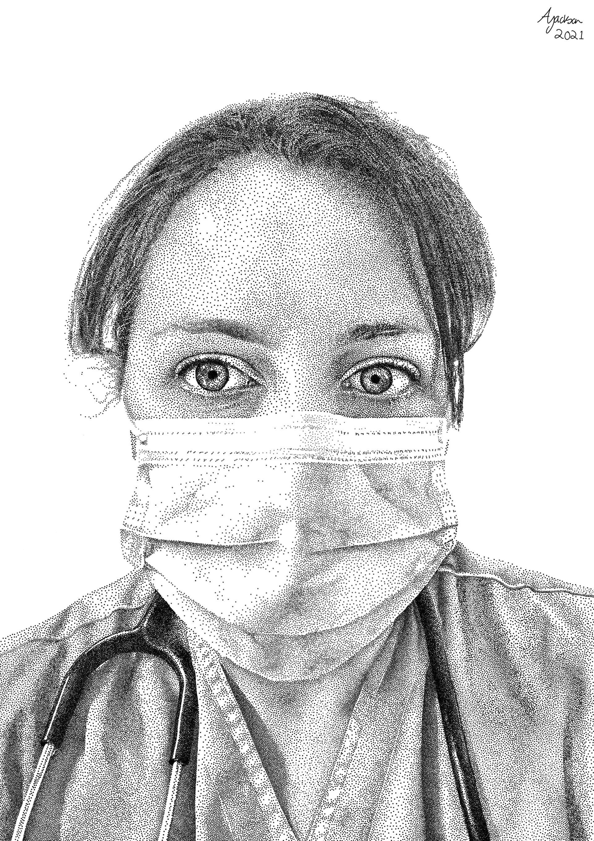 AJ Illustration, Charlotte - The portrait is of Charlotte, who was nominated by Laura as part of my NHS Portrait Series, with the portrait taking over 200 hours. Charlotte is a critical care ODP working at Northampton General Hospital.