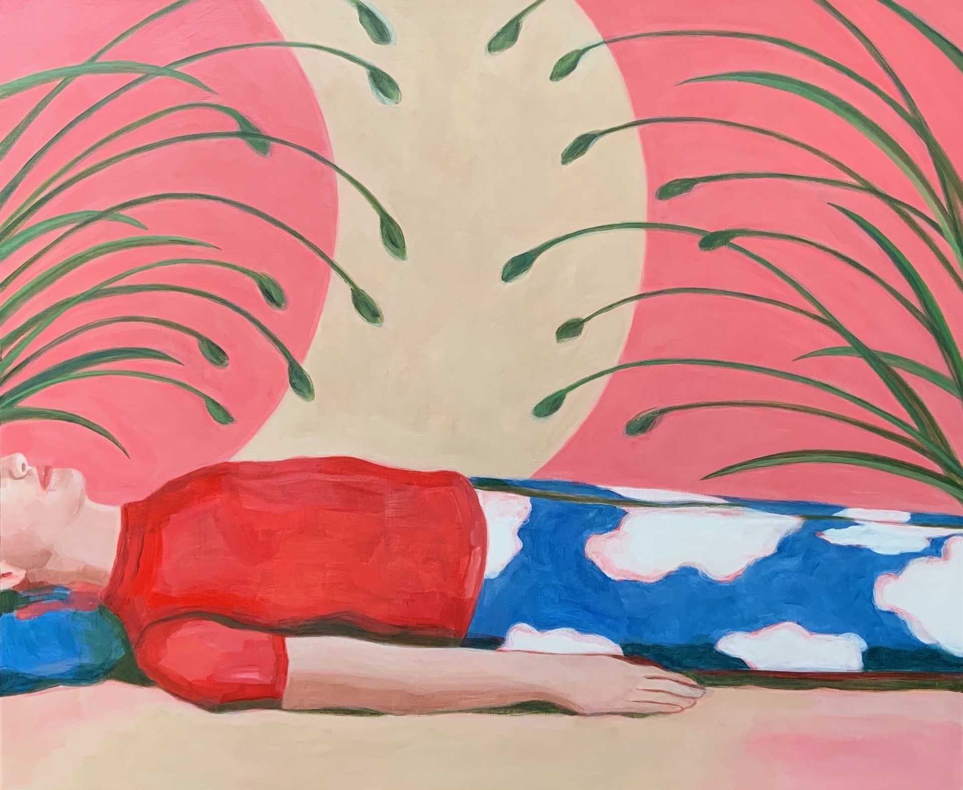 Kuda Mushangi, Simply Existing - We are going through a global pandemic. Not like anyone needs a reminder, but it is important to emphasise the surrealness of our current situation as a society. Normality as we once knew it does not exist anymore - and that is fine. With the perpetual pressures to live as we once did seemingly applied from all areas of our lives, this painting portrays something we all need; a moment to just be still and to allow our internal world to freeze. Even if we are doing nothing, we are doing a great job. Simply existing during these current times is more than enough.
