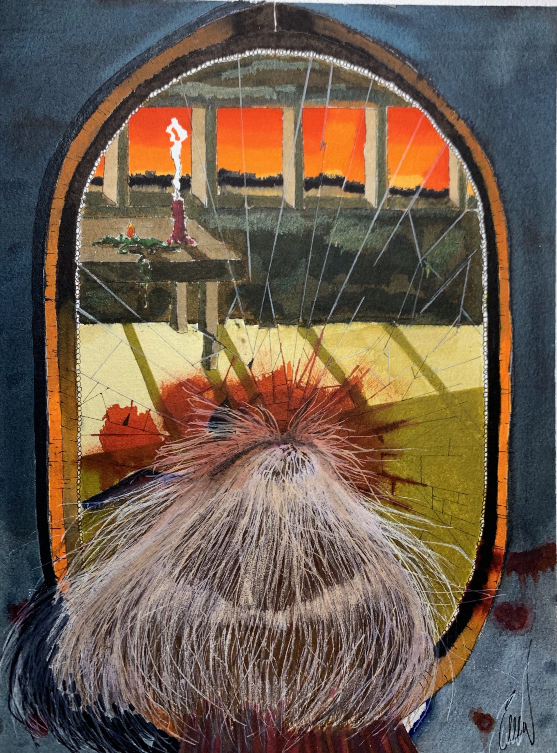 Rene Agostinho, Enough, can’t stand it no more - The old woman with long white hair smashing the mirror with his own head, trapped in her cloister, and completely hopeless represents the pain of social isolation, the remoteness of life and those we love. It is a silent pain, which slowly corrodes the soul, in a deaf and treacherous way. Our elderly people are lonely and watching the little time ahead fade into quarantine ...