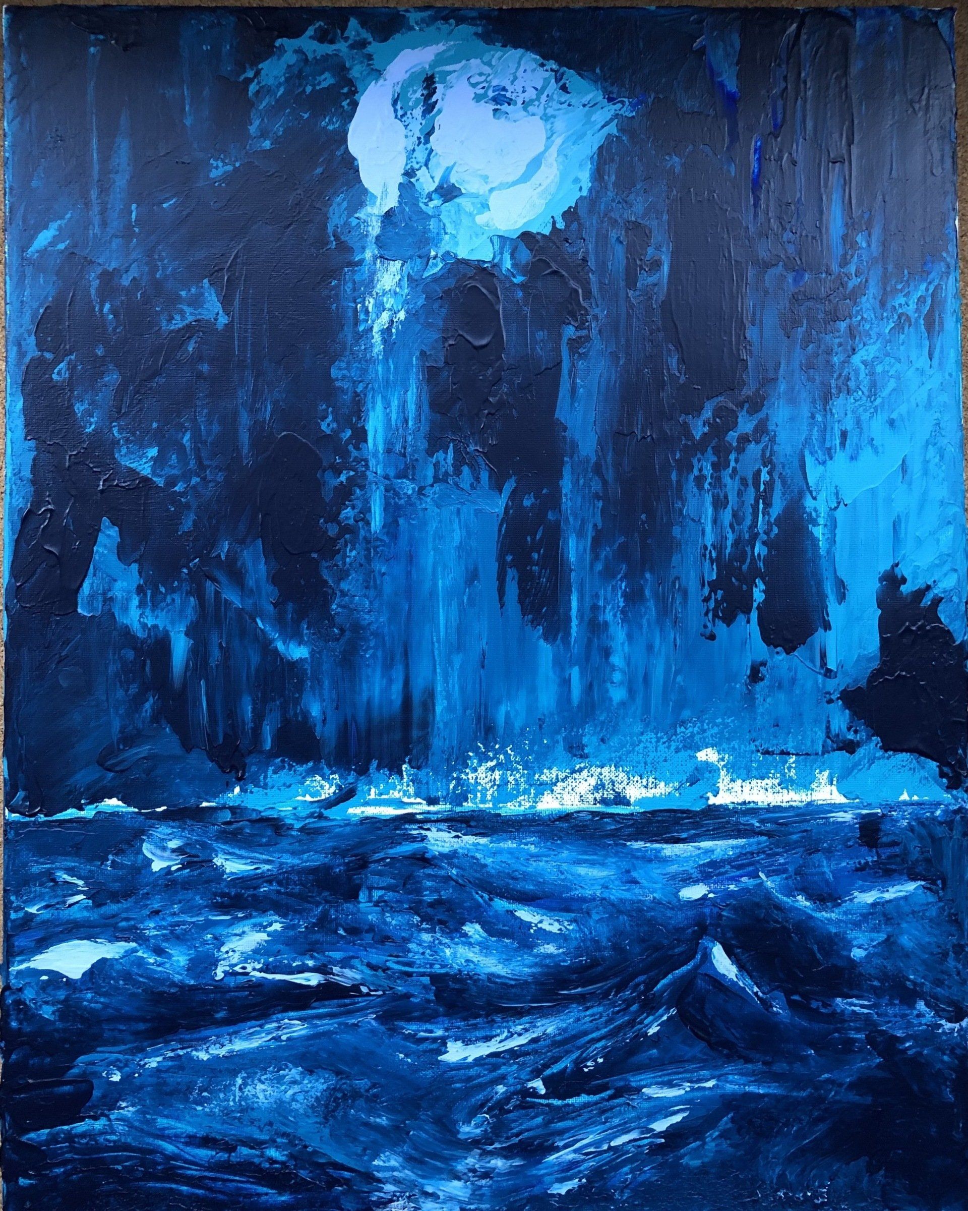 Mel Elston-Mendones, © The whole of the moon - I painted this after my reaction to news that my elderly mother had contracted Covid 19 and that she was in the Intensive Care Unit. I live far from her and she was on her own. She contracted it in late March 2020, at a time where little information was known about it. We were told to stay in and not to go out. I could only imagine what she was going through. I felt hopeless and helpless, and I needed to let my feelings out. This is one of the paintings, that I painted to release my pain and anguish.