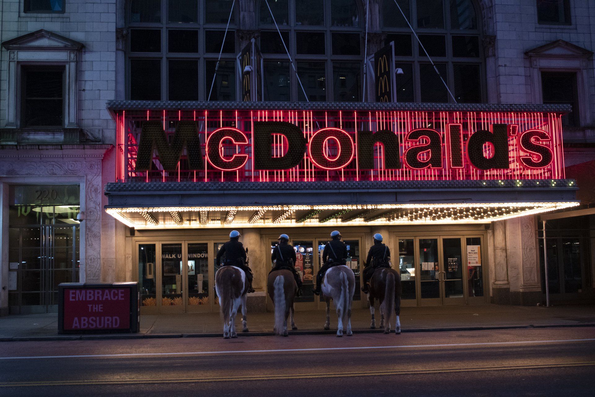 Emily Gold, Drive Through - During the COVID-19 pandemic, New York City as most of us knew it had changed completely. While walking around Times Square I noticed how it had become somewhat of a ghost town, versus what we usually associated the heart of Times Square with. Signs that would usually be advertising different brands were now lit with thank yous to our local heroes, and warnings to stay home when you are not feeling well. I wanted to document a new world that we, as New Yorkers, were experiencing and how that would affect us in the future. Each image describes how COVID affected New York City.