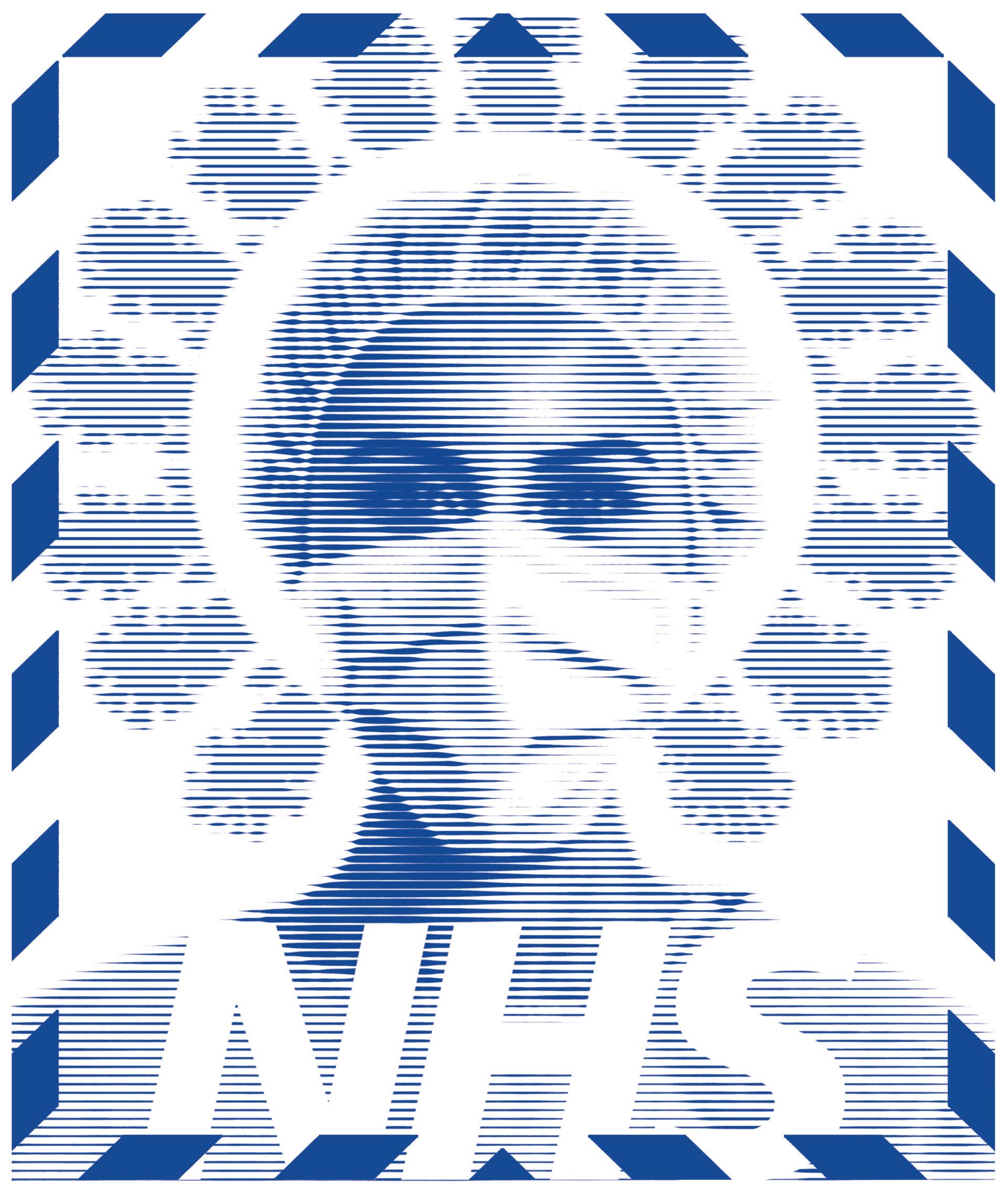 Illicit, Blue Angel - The inspiration for this design started whilst researching the coronavirus structure, which is known for the crown like spikes on the surface. It became apparent to me that there were visual similarities to a religious halo. The halo, also called a nimbus, is a radiant circle or disk surrounding the head of a holy person, and is a representation of spiritual character through the symbolism of light. I felt a halo was appropriate because the NHS staff were a symbol of light amongst so much fear. Whilst watching the daily briefings I noticed the government campaign graphics on the lecterns. I incorporated the chevrons which are taken from the reflective patterns on an ambulance, and worked in NHS blue as I felt it spoke visually of the moment. Instagram - @illicitgallery