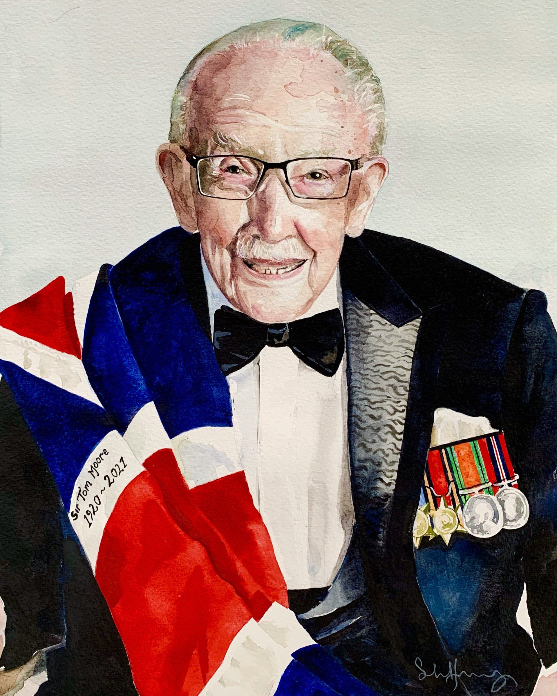 After Sir Captain Tom Moore passed away, I was deeply saddened, as was the whole of the Uk and even the whole of the world which responded with flypasts and tributes. He touched so many peoples lives and I wanted to Honour his commendable efforts in his last year and his incredible life by painting his portrait.