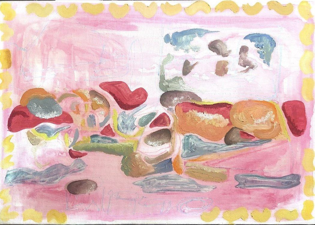 Pascie, Bordering Nations - Painting 60 x 90cm, acrylic on canvas, August 2020. Borders are ambiguous at most, but they can make all the difference in terms of opportunity, freedom, and quality of living for an individual. During COVID-19 times it became explicit how our daily lives are affected, depending on which side of the border one lives, with laws and rules changing from one week to the other. This is metaphorical for the interpersonal, cultural, and social borders we tend to create. What is true for all borders is that those living near them struggle the most. Nevertheless, there is plenty of color to be found within the darkness of isolation, both near the border and farther away.