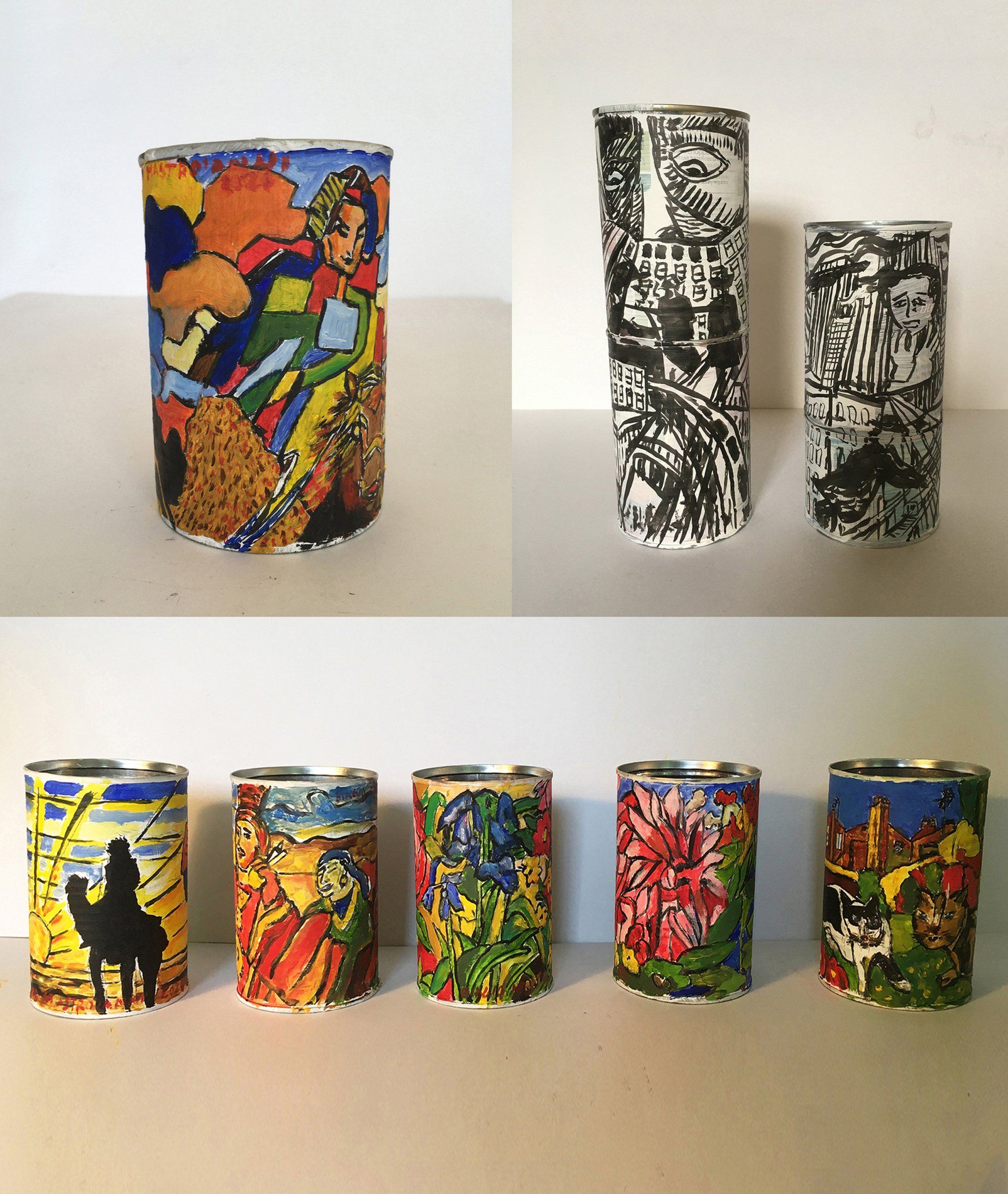 Biagio Mastroianni, Lockdown Tins - Well-being, freedom, dreams, poetry and pleasure find expression in smiling, serenity and tranquillity on primed tins of beans, chopped tomatoes, lentils, chickpeas, peas, tuna, artichokes and so on. Day by day the paintings and drawings on tins were created and numerated gradually: Day one, day two, week one and so on. One more reason why I created my “Lockdown Tins” was, that the Art shops during Lockdown were closed. I purchased canned food also for prevention during the pandemic Lockdown and it evolved my Art Installation to a social-political value.