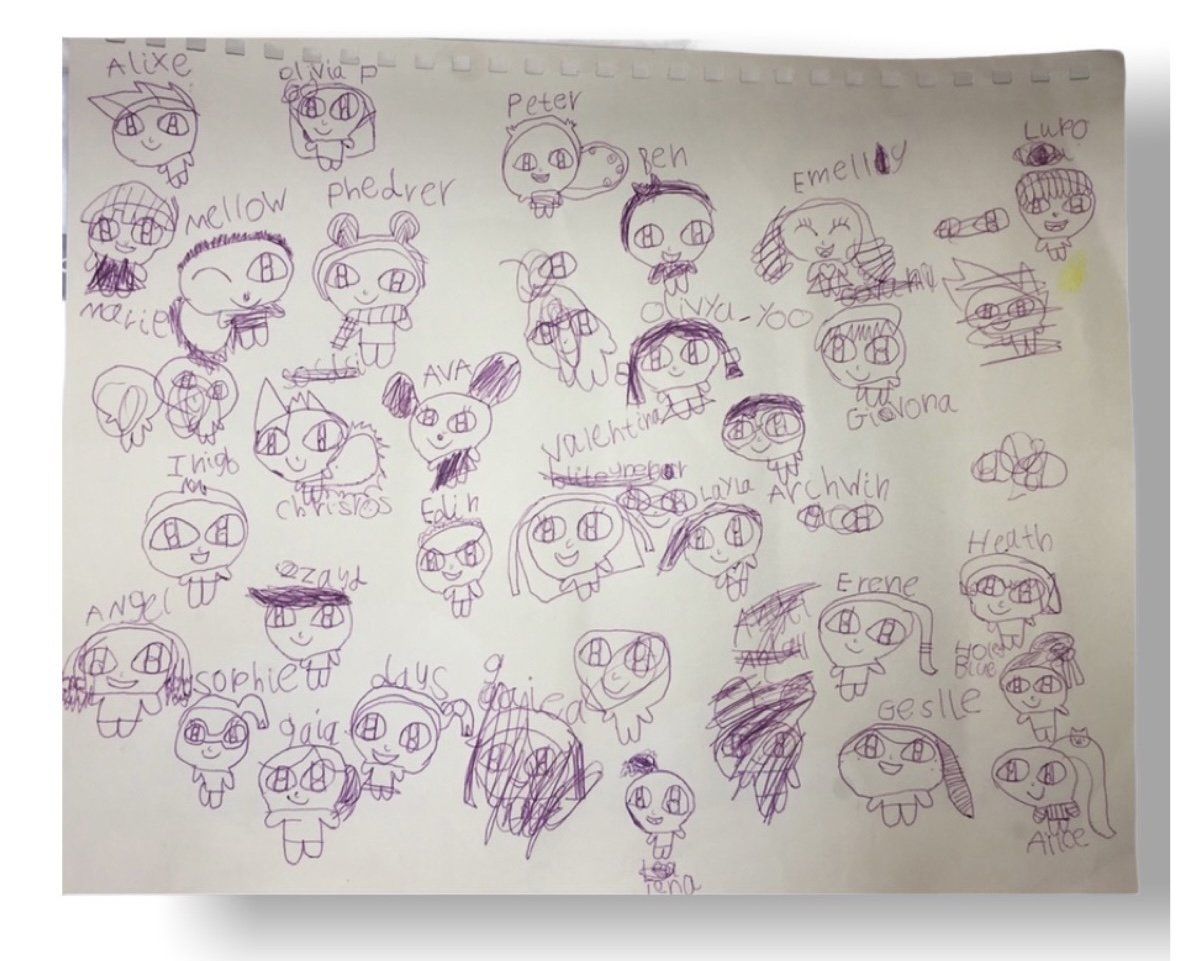 Mellow Williams Forrest, I Miss My Friends’ - My name is Mellow Williams Forrest, I was 6, when the pandemic started in March 2020. When the announcement came that school would close, I started this piece of art of my class. I used just a black Biro pen. I knew that I might not see them for some time, already I was missing my friends’. As the last week of school continued I noticed my class getting smaller and smaller as families started to isolate. By Friday I had almost done. We didn’t see each other again until September. Some friends did not return, as they moved to other countries. This was really sad! Thankfully I have this art to remember them.