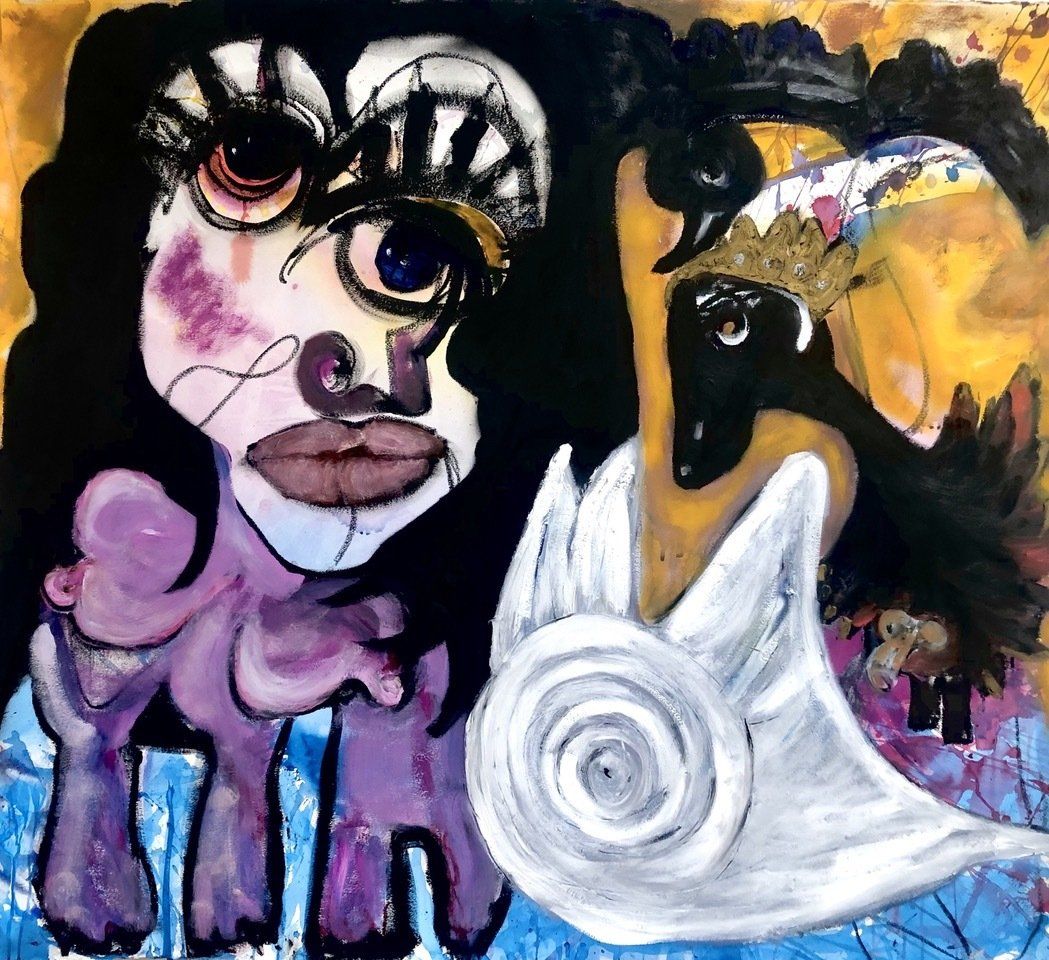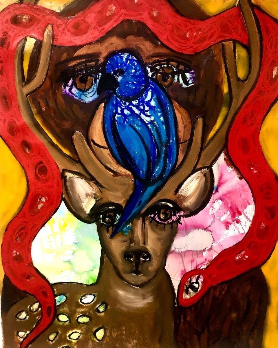 Fariba Safai - The canvas is my north star. Born in the East, raised in the West, my heritage’s orientations direct my brushstrokes as I record what was, depict what is, and dream of what could be, expressing my longing for a collective reimagining of the world. Recognizable forms such as flora and fauna representing innocence and her struggle to be seen, cared for, and remain. The battle of patriarchal domination over not just women but also the feminine of the earth itself is at the heart of my inspiration and voice. Through art, I can access the inspiring shifts in social consciousness, resisting domination, and finding the courage to envision a reality where all life could be shared and valued. The figurative abstractions express the power in vulnerability, a refusal to take cover or hide.