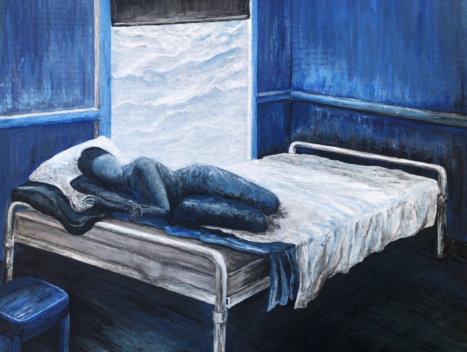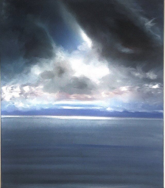 Caroline McPherson, Division - This painting represents the social and psychological divisions caused during the pandemic. Visually, it is divided into two, between the sky and the sea, to represent the divisions felt in our relationships, around scientific information, and the divisive nature of social media and disinformation.