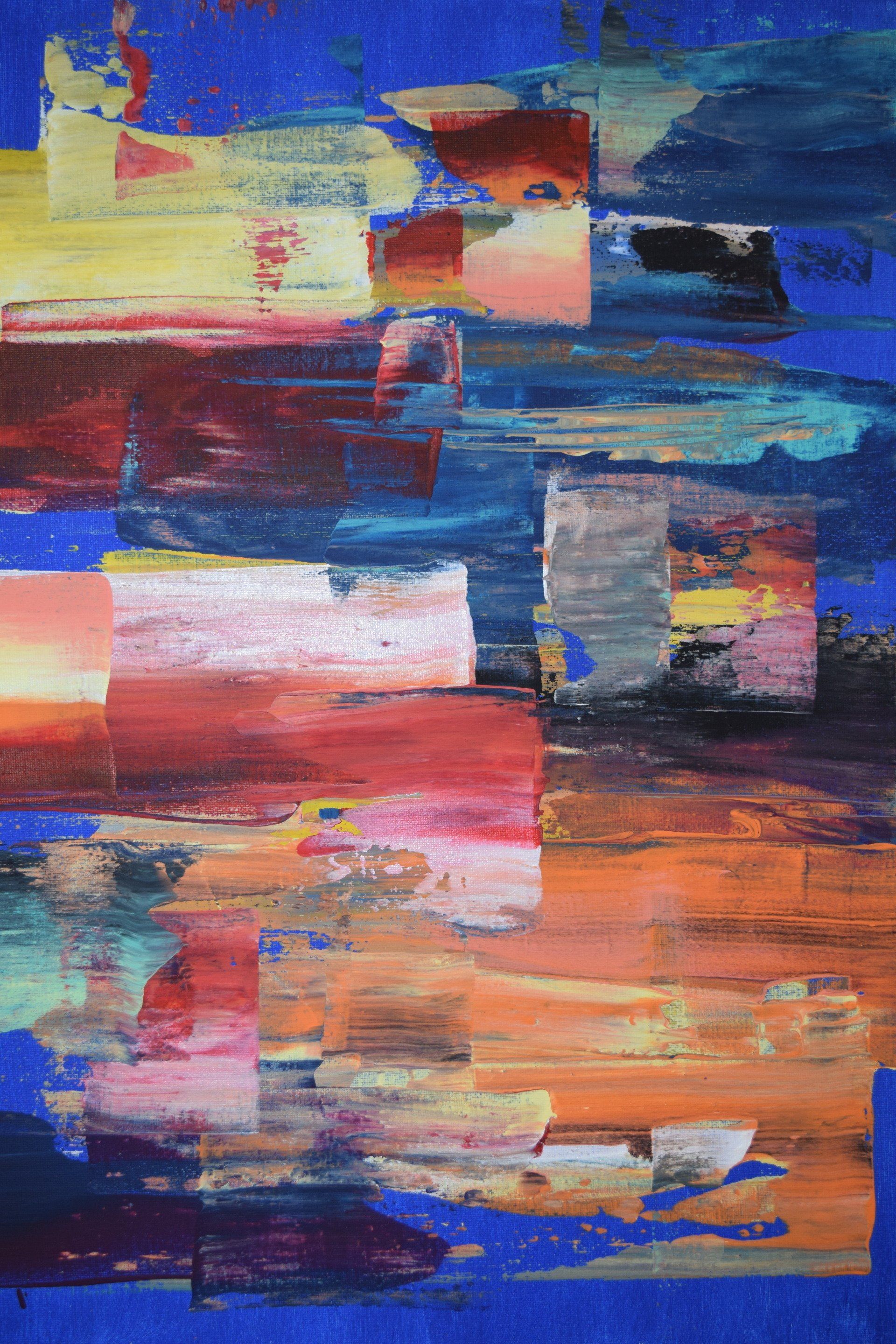 Kristianna Gasparjan, Selflove - As a newly immigrated individual, I am finding transnational confidence while holding onto selflove with purpose. The abstract painting combines adventure, romance, joy and SWANA ancestral remembrance while grounding on certainty even through new adjustments. Capturing the self-loving fragments in my past, present and optimistic future. Some parts stand out alone, but I perceive life through layers and context in which effects are intervened.