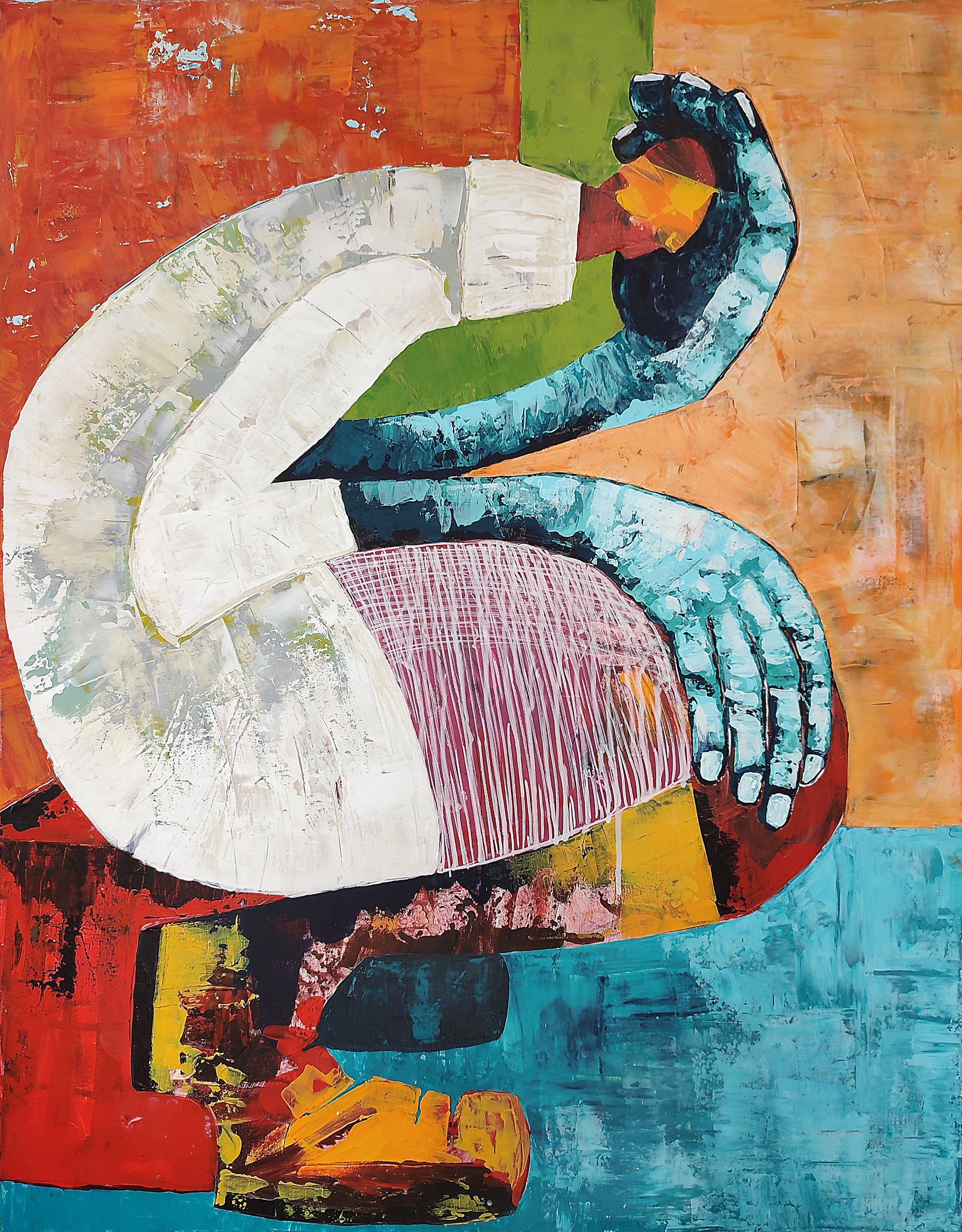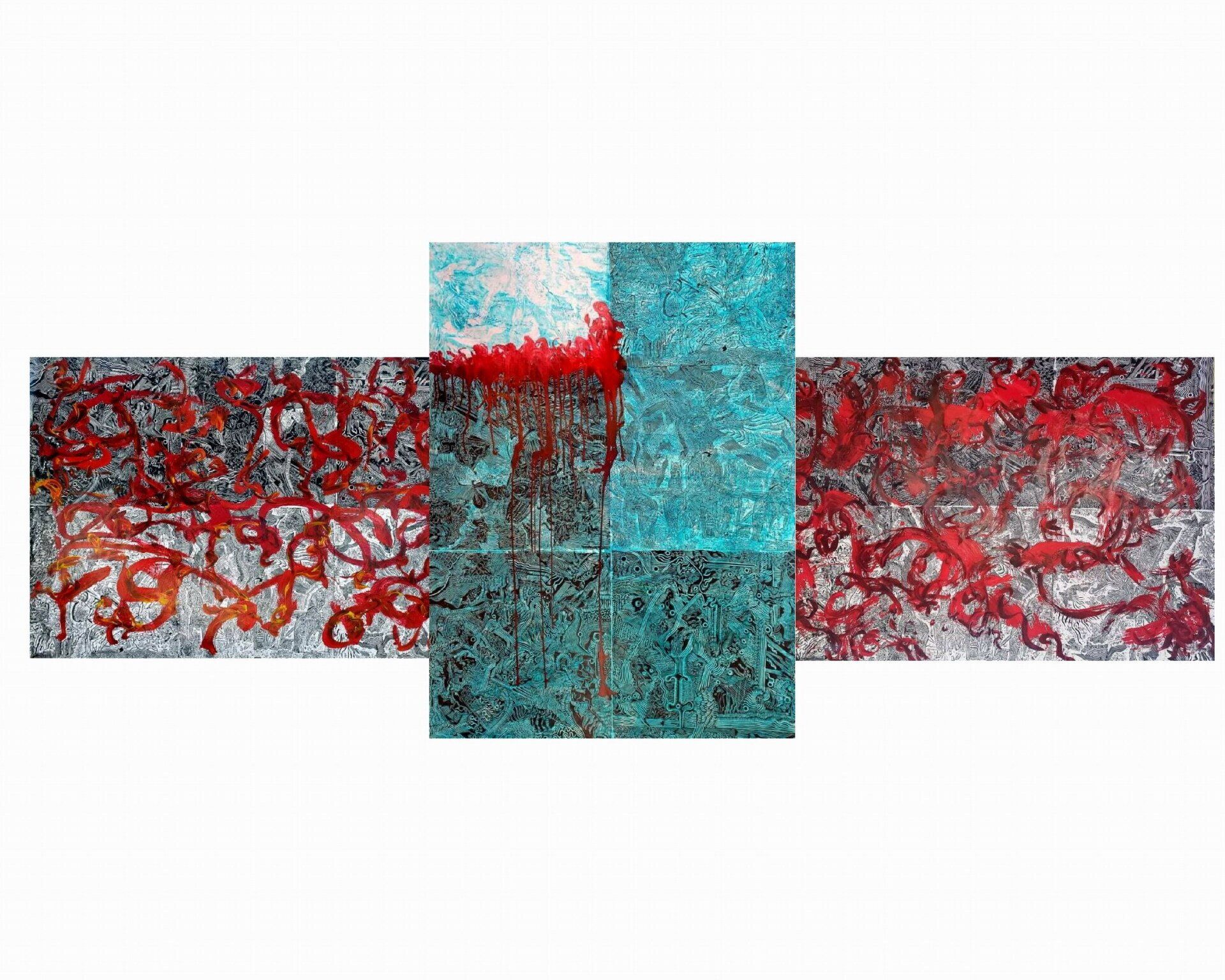 Rita Merheb, Statements from the Middle East - Calligraphy is an artform, an artist may create a whole art piece out of only letters, it can look stunning, and it can deliver various messages, without writing a single word. This aspect of calligraphy has always inspired me, both in my teaching and in my personal art works. I always strive to show the importance of the letter as a visual element, and not only as a textual message. This was the driving force that guided me in creating this collection. A set of art pieces that bridges the gap between Middle Eastern traditions, values and way-of-life on one side, and the current contemporary art movements on the other.