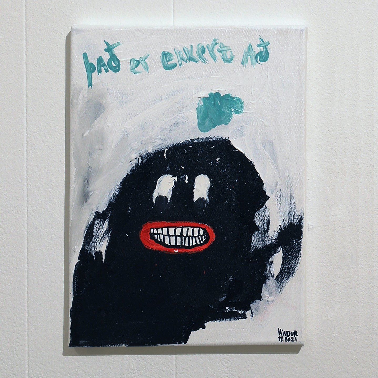 Hildur Hermannsdóttir, Anxiety - The writing on the painting “Það er ekkert að” stands for “There is nothing wrong”. I have personal experience with anxiety among other mental disorders and this piece characterizes anxiety. How we brush problems and bad feelings aside and hope for them to go away while they never will unless we address the issue. Otherwise it will manifest in our bodies as anxiety. No matter how good you are at hiding or playing like there is nothing wrong, your body keeps the score. All my work is deeply autobiographical and confessional, with focus on mental health issues.