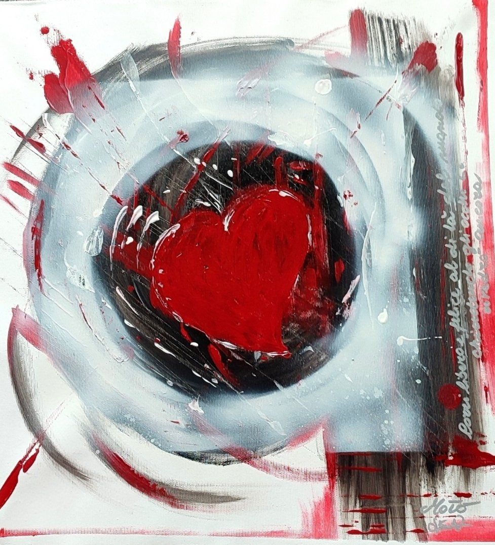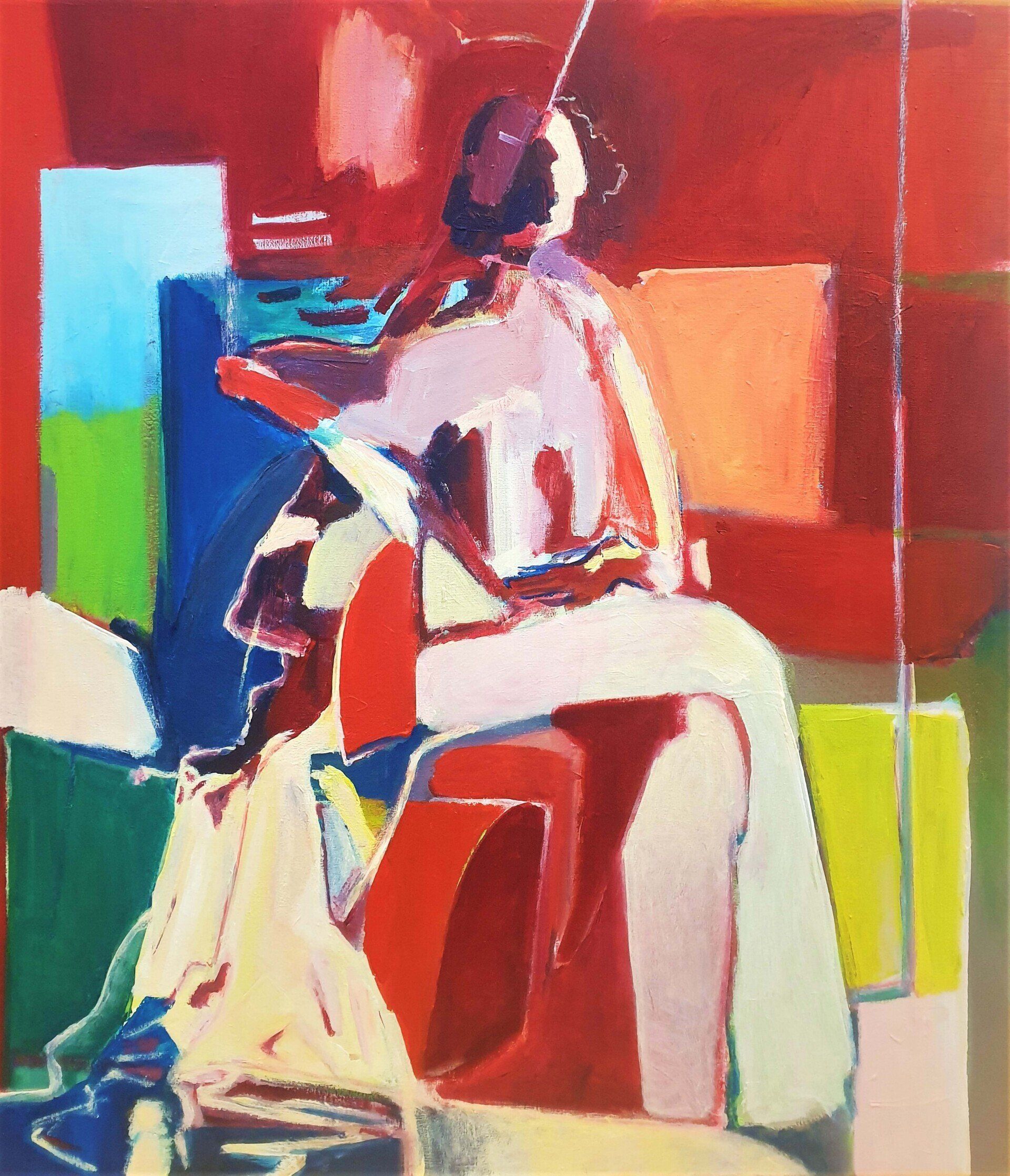 Yosserian Geairon, S.posant - Like most of Yosserian’s paintings, this one is taken from a memory. Sometimes fleeting, memories always leave a trace in our eyes as well as in our hearts. This is precisely what Yosserian wanted to transcribe here. It was on a hot summer day, an elegant woman was sitting on the terrace of a bar. Her posture might seem ordinary, but the energy she exuded was impressive. The red that covers the canvas appeals as much to the warmth of this moment as to the indescribable value of what this mysterious woman provoked. Moreover, the colors and shapes of the central figure merge just enough to scream their brilliance and delight our eyes.