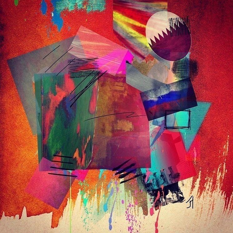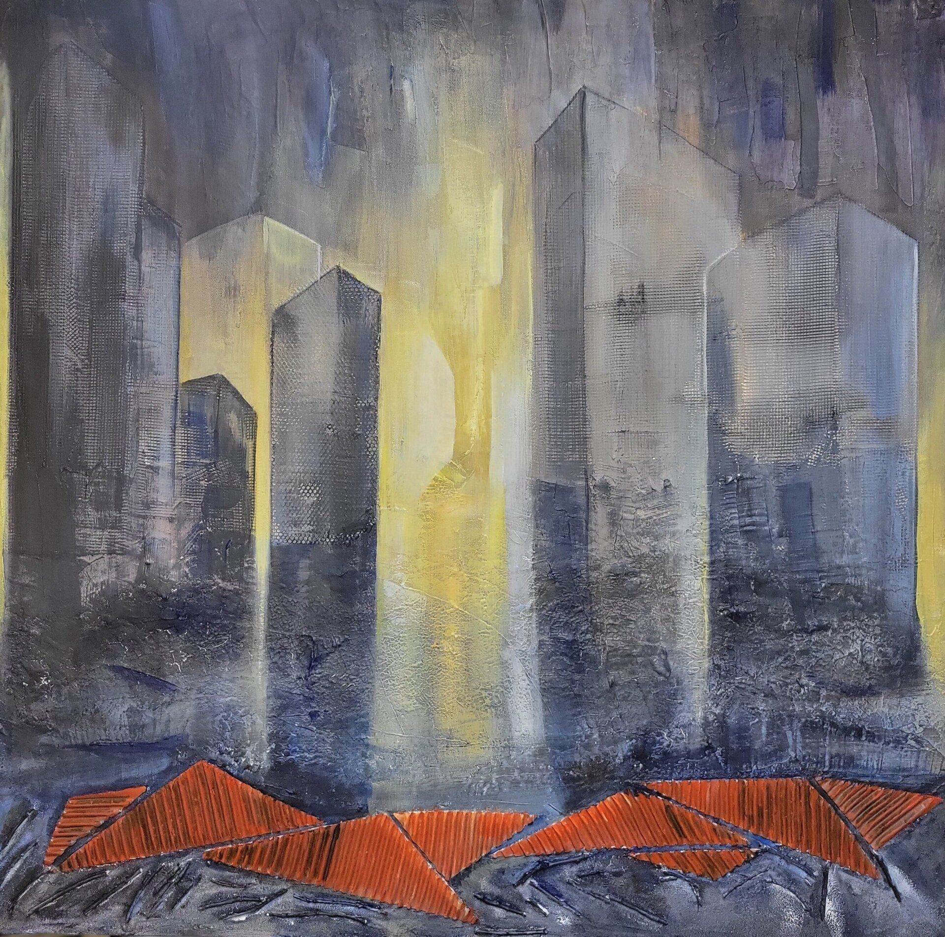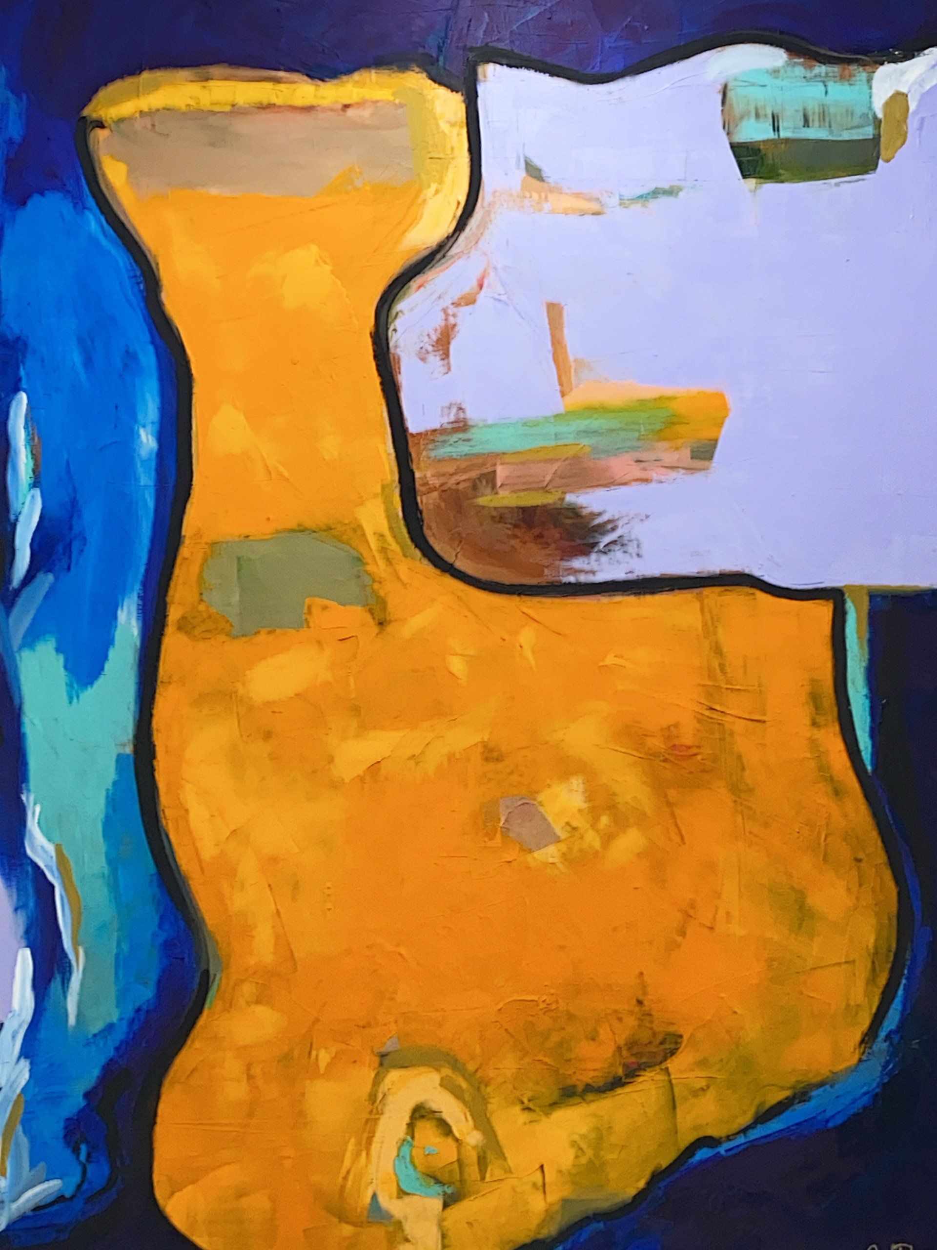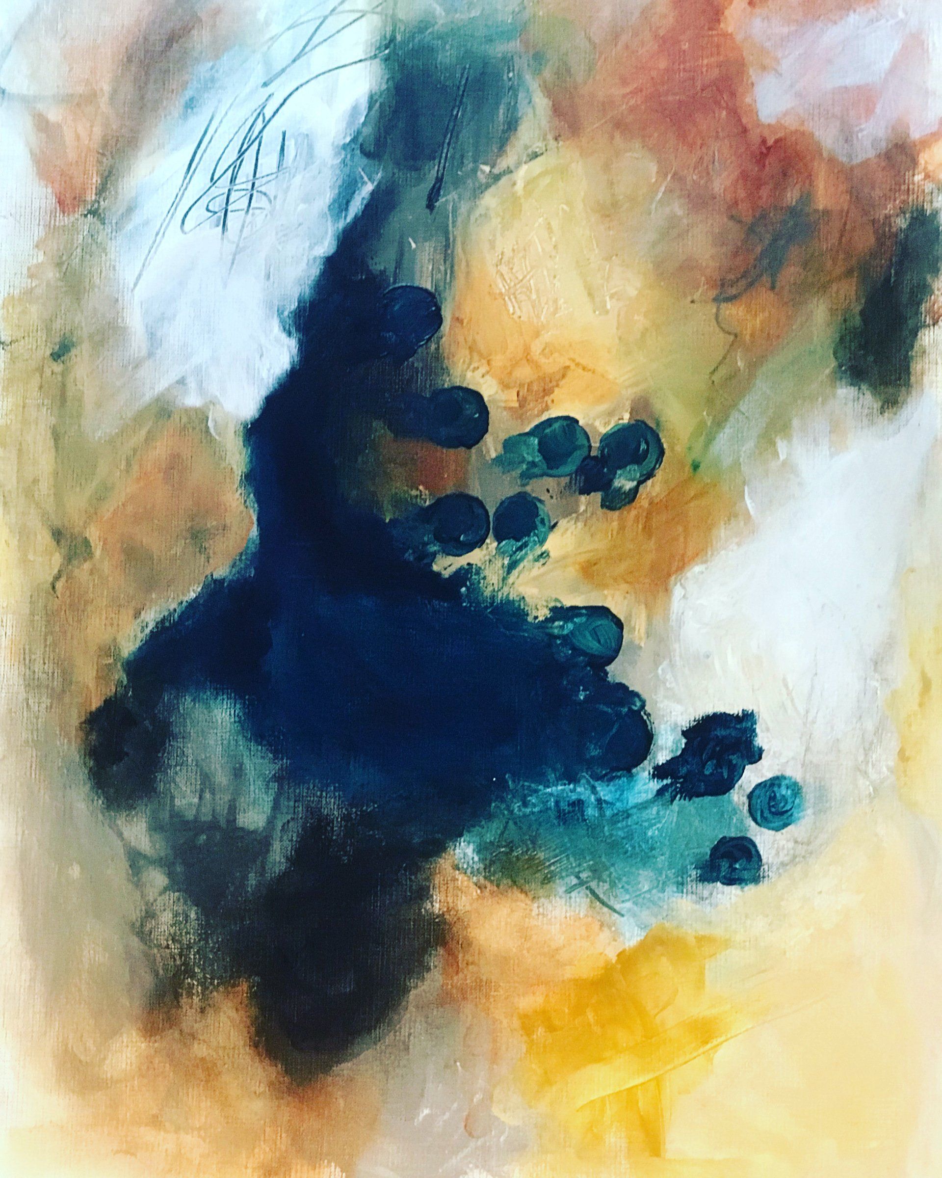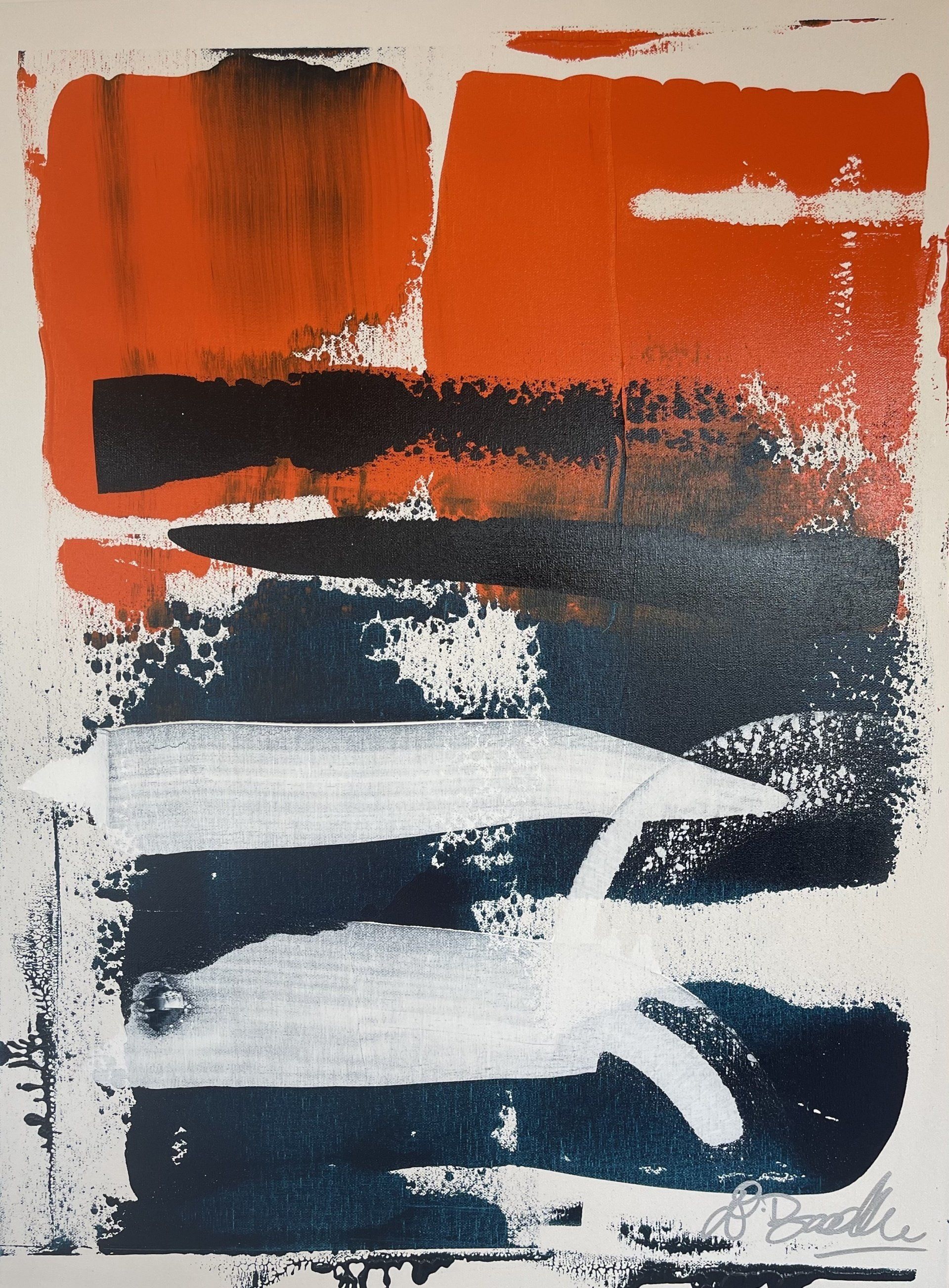 Emma Carey Baxendale, Evoke no: 5.....Deep burnt oranges collide with dark indigo blues.... - I started my Art works in 2002 when I came back from living in New Zealand for 6 months and travelled around Singapore. These travels illuminated and ignited my Art and expressionism. I specialise on a breadth of experience: Fine art, Graphics, Photography, Textiles, Ceramics and mixed media.In 2021 I decided to take a leap of faith and devote my full attention to painting and creating Art collections to exhibit worldwide.Each piece of Artwork reflects the emotions of life journey’s, feelings, experiences, celebrations, curiosity and highs and lows of life. My art also captures the viewers personal experiences and exploration.