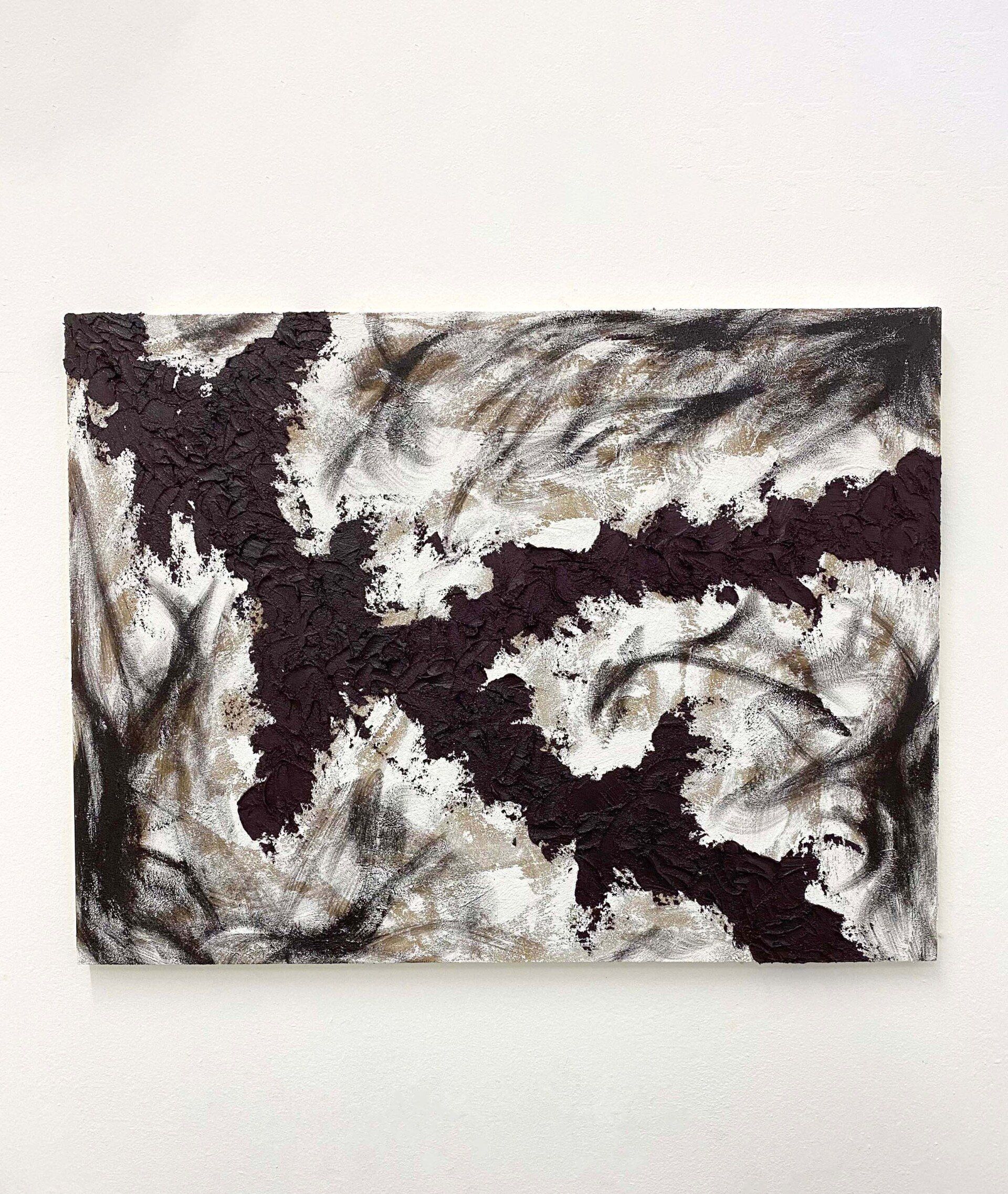 Zac Caspersen, A Path to the Void - Through temporal explorations of the past, present, and future, I aim to question the ability of the human mind accessing the unconscious to highlight our existence within the void and the sublime. Attempting to encompass the sense of calmness contrasted with mystery and the unknown, this painting guides the eye through a textural landscape taking advantage of media such as glue, sand, acrylic, and oil paint. With a personal practice evolving around meditation, all aspects of the making process are meant to evoke relaxation and solitude.