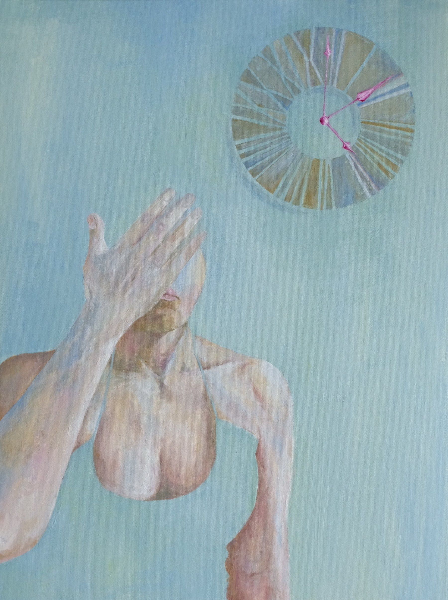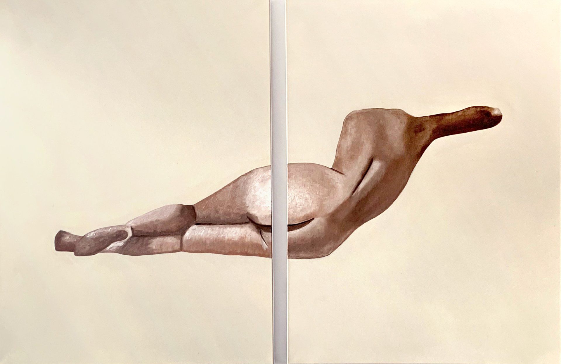 Marcia J. Bianchi, Sunblind (2020) oil on canvas, 40 x 60” - My work explores the space between movement and stillness, often expressed through the lively curves of the female form juxtaposed against a solid ground. Through the use of oil paints and a neutral palette, my paintings are a translated state of mind — I intend to capture the essence of whatever is behind a blank stare and draw attention to it. Motivated by my theory that if we confront the uncomfortable, we will find solace.