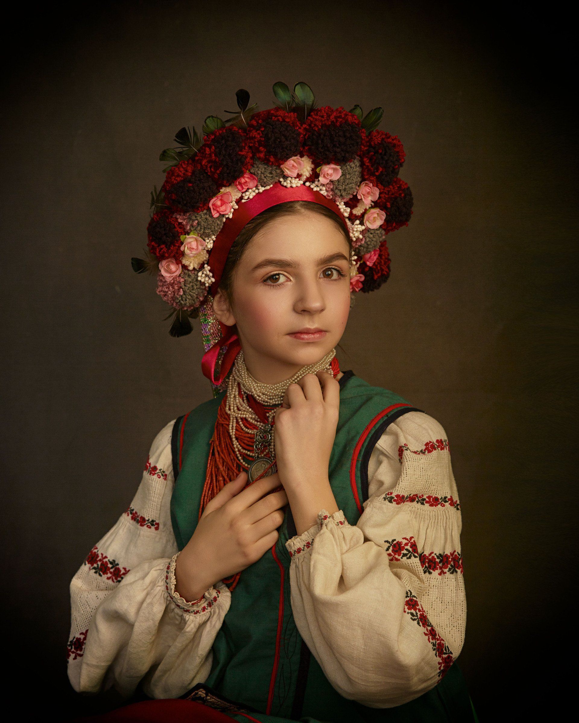 Tetyana Erhart, Girl in Traditional Ukrainian Clothing - Tetyana is a professional photographer from Lviv, Ukraine. She specialises in painterly portraits of women and works masterfully with both natural and studio lights. In this picture, she portraits a Ukrainian girl in traditional clothing. Tetyana studied the art of photography and retouching with British, American and German professionals. She also attended photography workshops in Germany and Poland. In 2015, she created her own photo studio, which grew into the ERTE