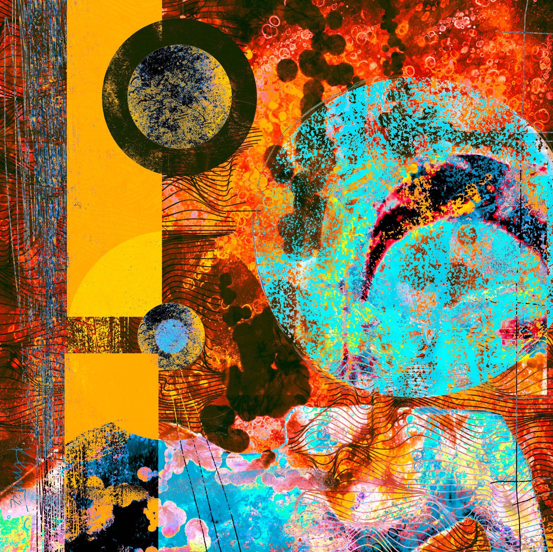 Kat Evans, The Lacemaker - Kat Evans is an Abstract Pop Expressionist Based in the UK. Her work is subject to the relevance of her surroundings, layers of time, the importance of here and now, and the marks we leave behind. The earth, the sun, the moon and our connection with the universe. The intricate details of layers, mediums and time are subjectively squeezed into every square inch of Kats work. With a passion for art history and a substantial library of vintage art books. Kat combines acrylic, ink, oil pastels, gloss paint, and other mediums with book pages and other media from past and present. Kat creates a vibrant collection of work easily recognised as her own.