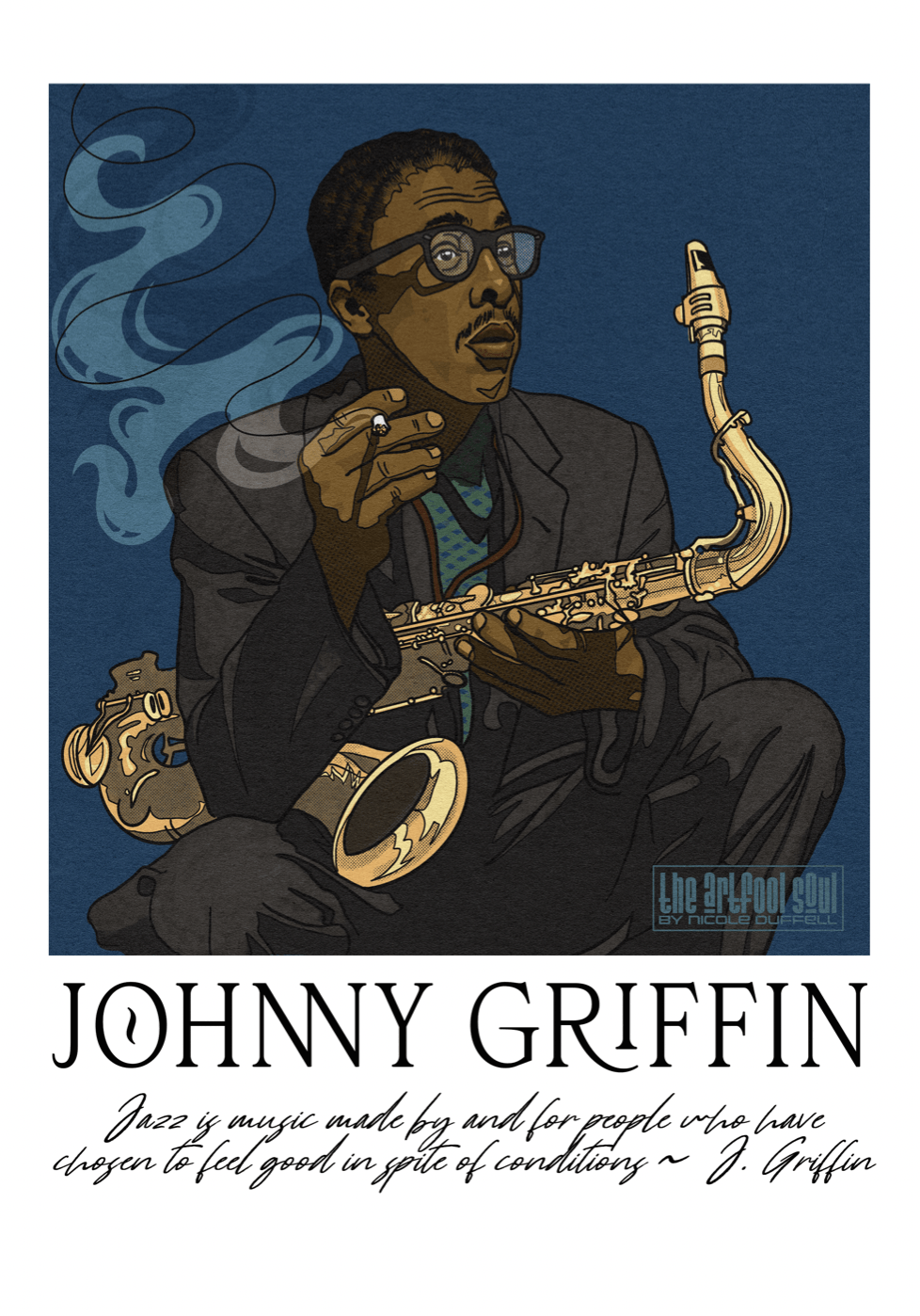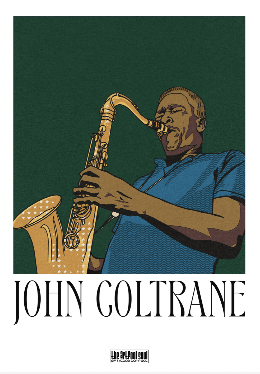 Nicole Duffell, John Coltrane - I started very early in life as a working illustrator in my teens... but I also played the saxophone. I didn’t pick up a pencil for more than thirty years of jazz studies, band gigging, touring, & then running jazz clubs in SE Asia. The strict lockdowns in Singapore brought me back to my roots in art and I started teaching myself digital design in 2021. So far poster design has helped me survive through this Covid era and I will keep improving my skills to continue this exciting new journey. Staying true to what I know, my artwork for this submission is based on some great jazz artists; Nat King Cole, Barry Harris (who we sadly lost to Covid recently), Johnny Griffin (my personal Hero) & John Coltrane.