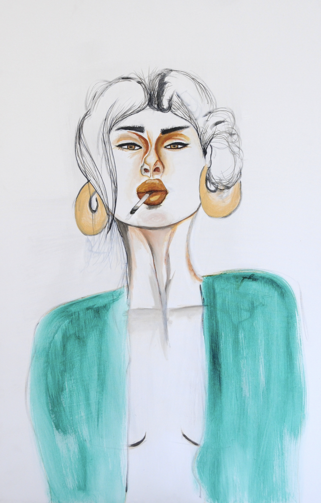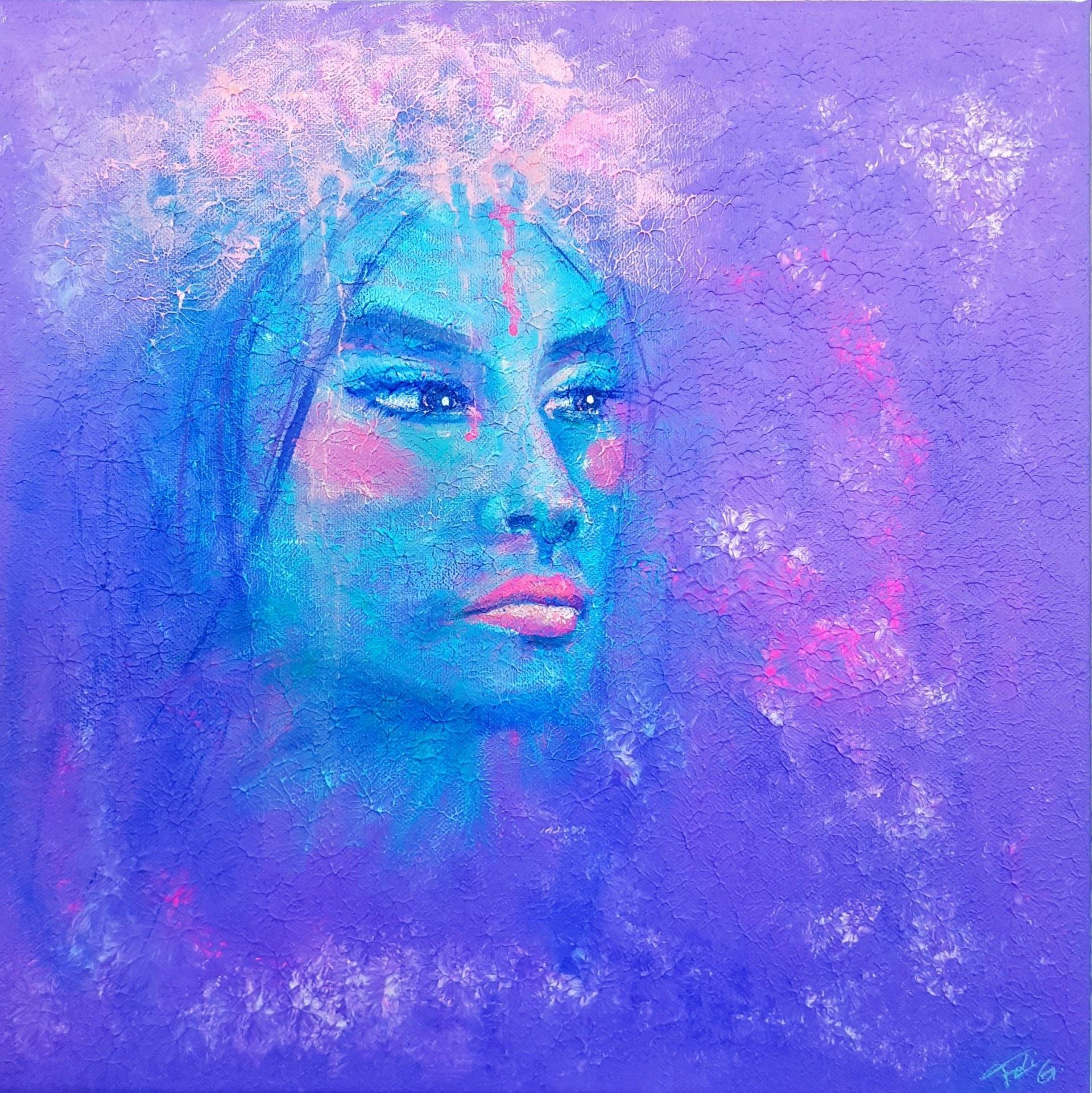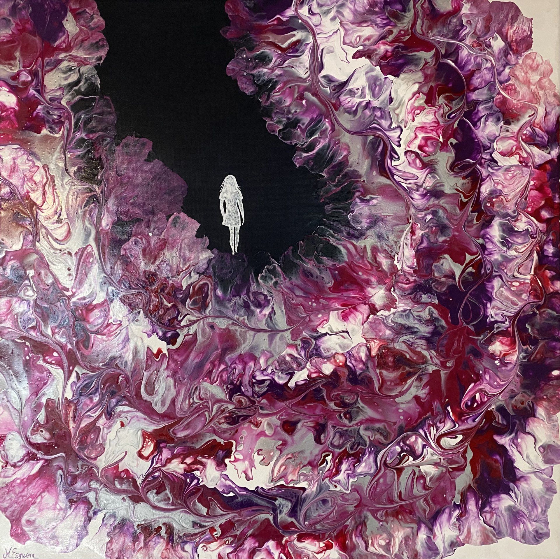 Jasmine Karimi, Suprasternal Notch - I am an interior designer and self taught artist. Painting has always been my meditation. Always encouraged me to take my artwork public and I never could. Always felt pride in being a misfit not knowing why. After a divorce, a downfall of emotions and a late diagnosis of ADHD at the age of 36, I got rid of built up parts of me that that I no longer needed. A journey of finding a refined version of my identity with clarity brought me back to painting starting with this piece. She symbolizes growth, diversity, femininity and self expression by just being in an ethereal mood. A free soul with no expectations just an eagerness to what’s next. I’m still a proud misfit. I now know why.