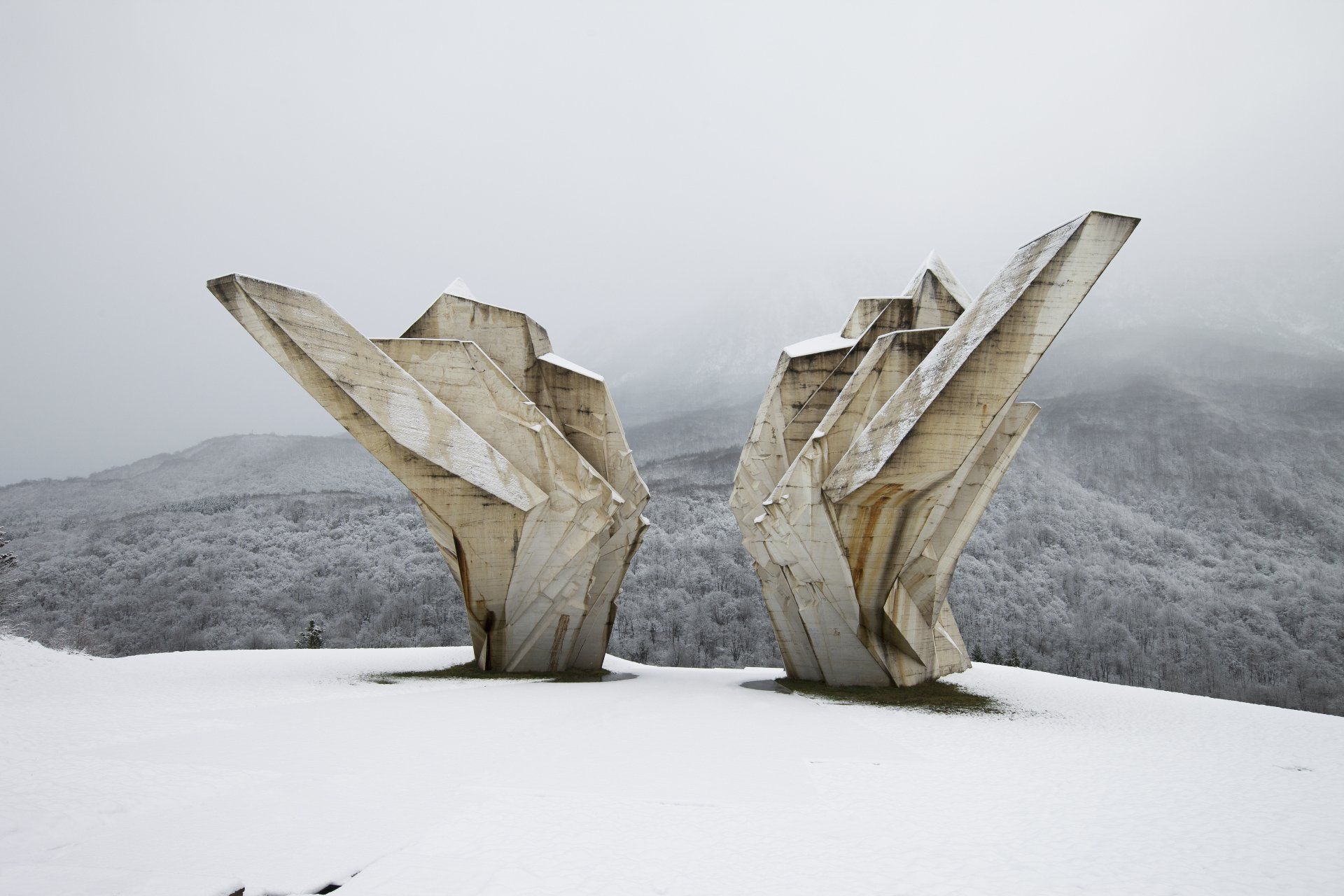 Gøneja , Spomenik - A breath-taking war memorial concrete structure over some snowy Bosnian mountains.