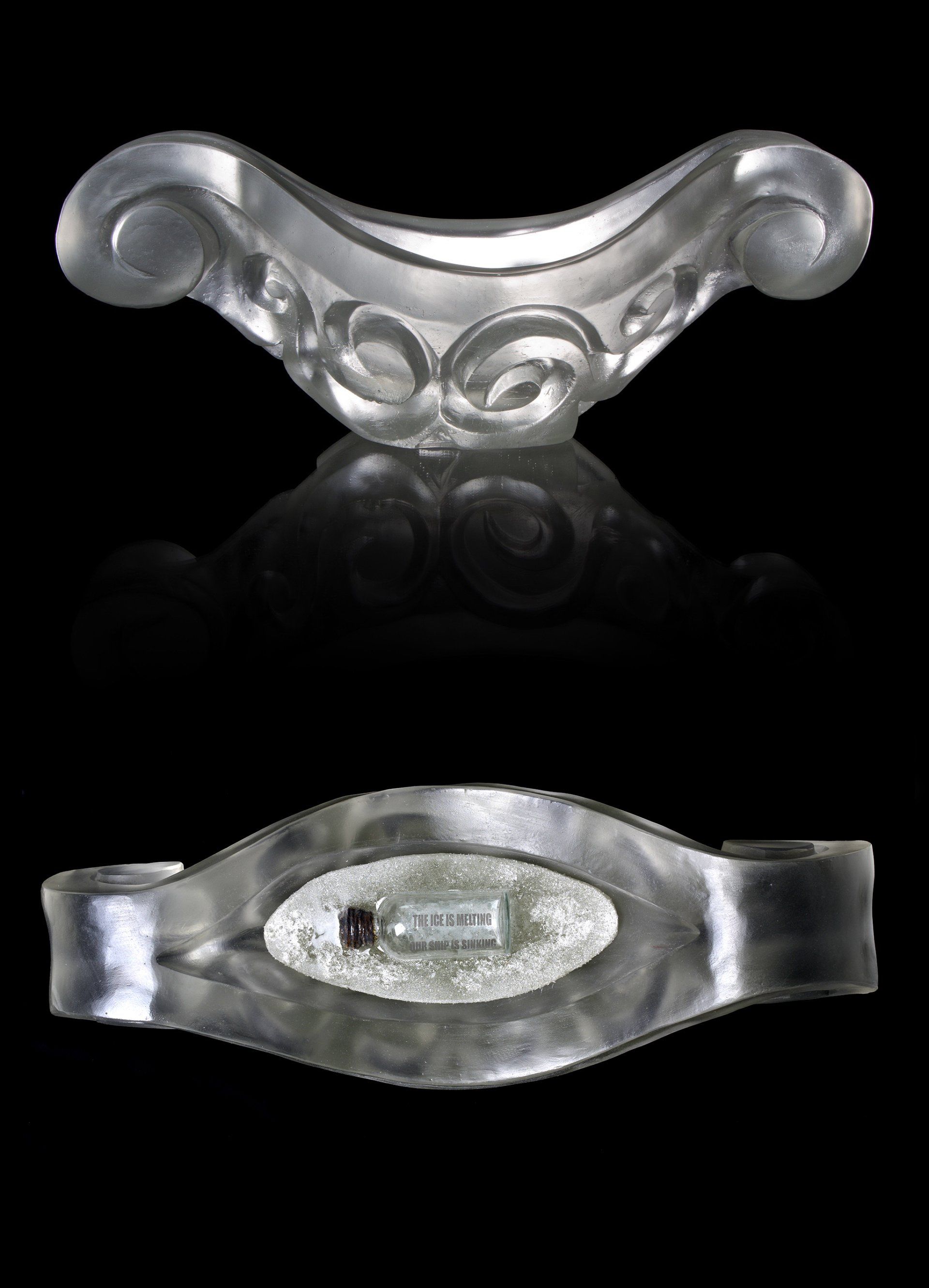Steve Jensen - My parents are from Norway. My father was a fisherman. My grandfather was a fisherman. Upon the death of both of my parents, I made a boat for their ashes and buried them at sea like a contemporary Viking funeral. I also made a boat for my best friend and my former partner. These deaths were extremely tragic. What I am attempting to do is to take something personally painful and turn it into something beautiful. The ice is melting, our ship is sinking is a metaphor. We, as humans, have abused our environment. If I had inherited my father or grandfathers fishing boat, it would have been easier to make a living as an artist rather than a fisherman, a sad reflection on our marine environment.