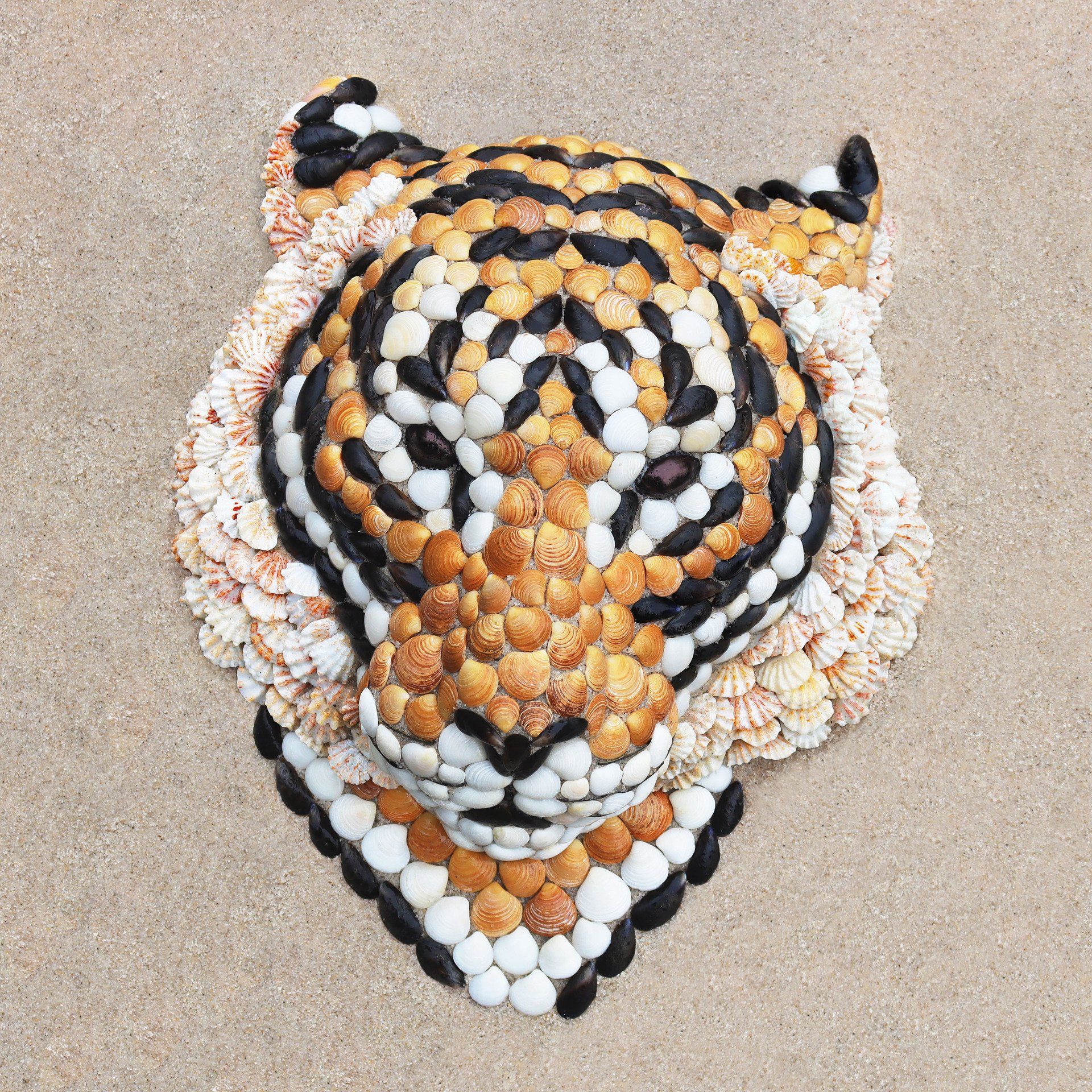 Anna Chan, Fierce - If sand is my canvas, then seashells collected from the shorelines I frequent are my inspiration, gemstones and brush strokes as an artist. Together they fit seamlessly into a puzzle becoming a new rendition of life greater than their own. Fierce was created to bring awareness to the diminishing Tiger population due to illegal poaching, habitat loss and dwindling food supply. It is part of a permanent series depicting endangered species drawing parallels between their precarious existence and a sand sculpture on the beach. As we observe each portrait, we are reminded of the cohabitants large and small on this planet and if we are doing enough to preserve our world as we know it.