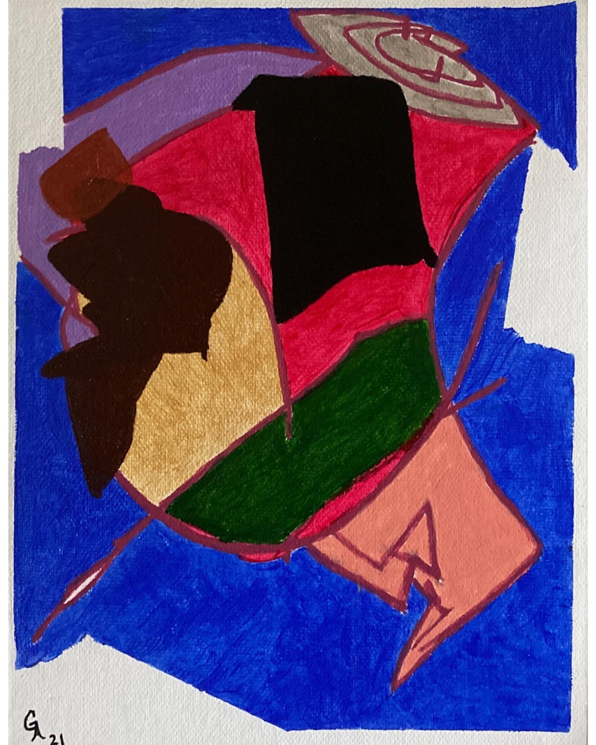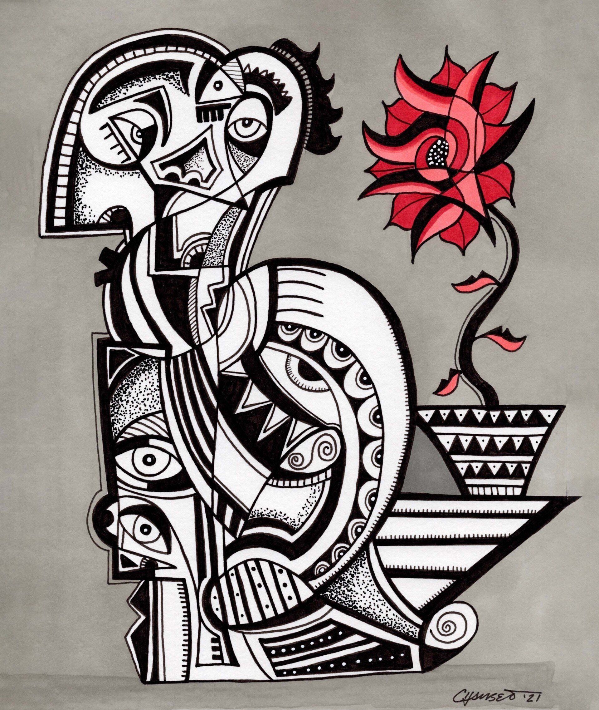 Jason L. Chambers, Hope - My piece is a Cubist interpretation of a person riddled with anxiety and worry. The abstract flower represents hope. It was inspired by the quote, “Where flowers bloom so does hope.” ~Lady Bird Johnson